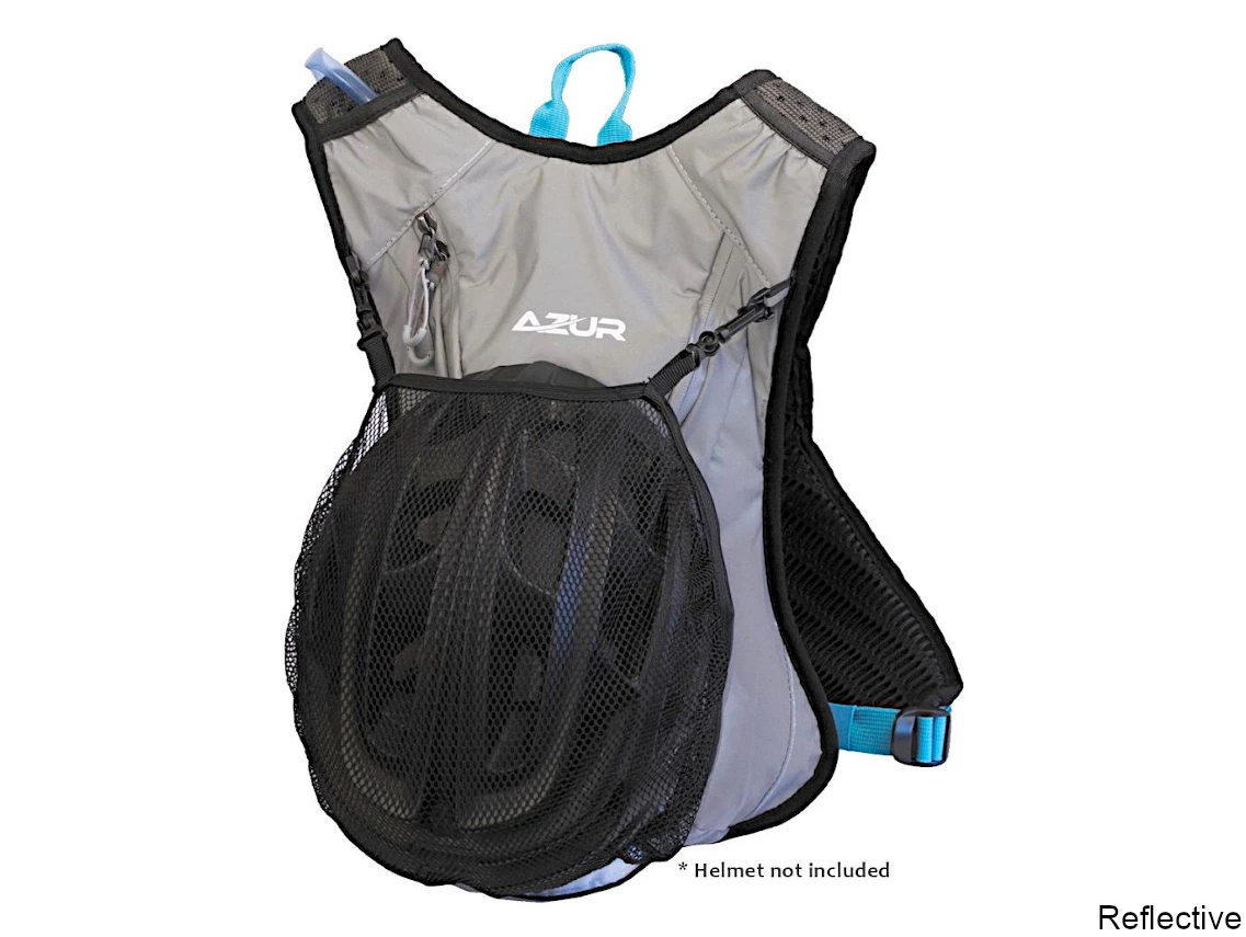 Mirror-Reflective Technology – Using special technology and reflective fabrics the Azur Aquapak Reflective Hydration Backpack is able to bounce light from street lamps, vehicle headlights and other artificial lights back at those around you to maintain your supreme visibility when riding or walking in the dark.