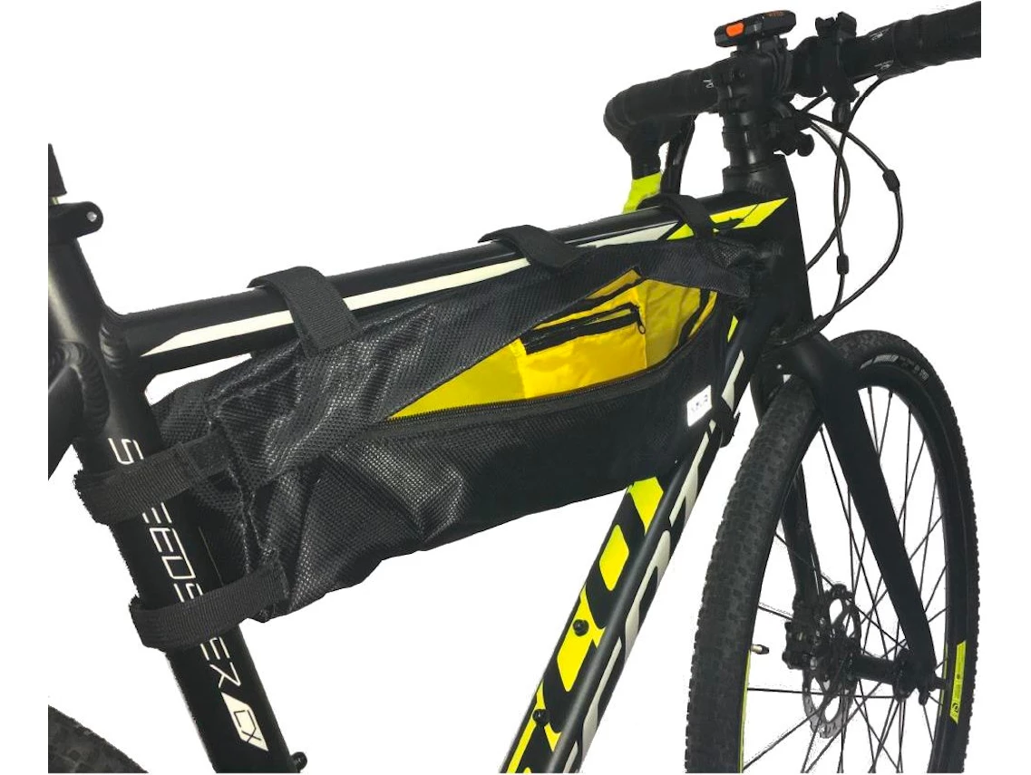 The Azur Torpedo Tube Bag hangs under your bike’s top tube, with 7 hook and loop straps to secure it in place. With internal zip and mesh pockets to keep items organised, and constructed from waterproof material to keep everything dry, this bag is a great addition for any commuter or long-distance rider.