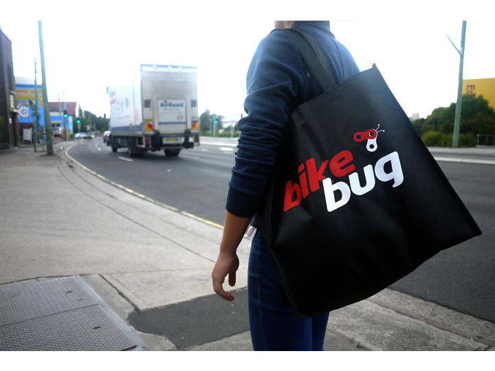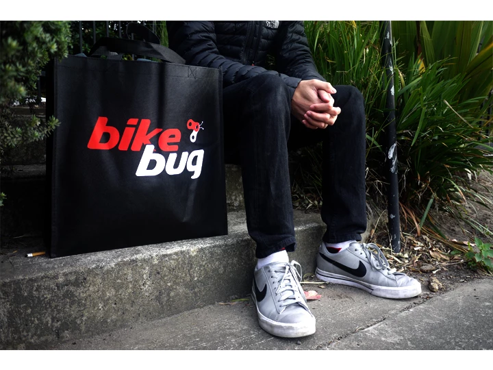 Discard your plastic bags and shop in style with the environmentally friendly Bikebug Shopping Bag.