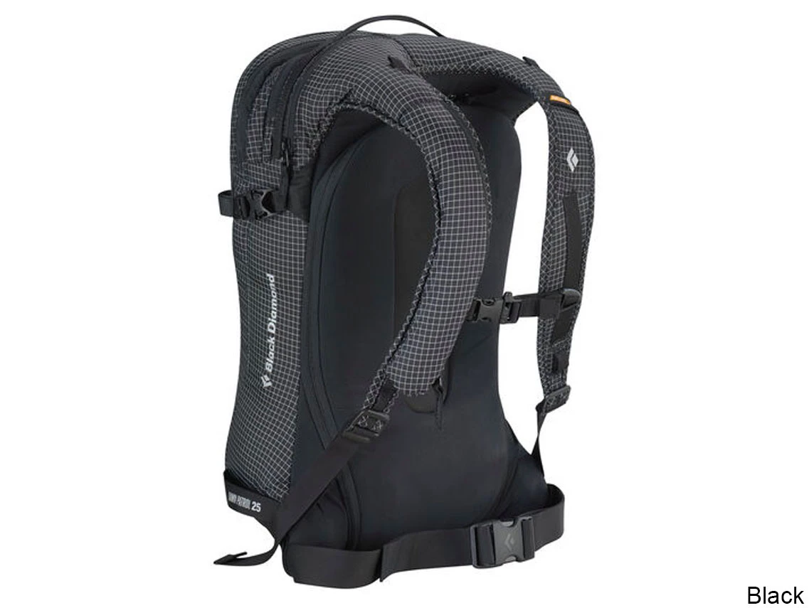 Early-morning tours, spring ski-mountaineering missions and in-bounds storm days—the Black Diamond Dawn Patrol 25 Pack is a lightweight, go-to pack with a streamlined design and essential features. The pack’s active, form-fitting suspension provides a contoured, body-hugging fit, while zippered backpanel access provides easy entry. Exterior attachment points for skis, a helmet and ice tools outfit the pack for technical trips into the mountains.