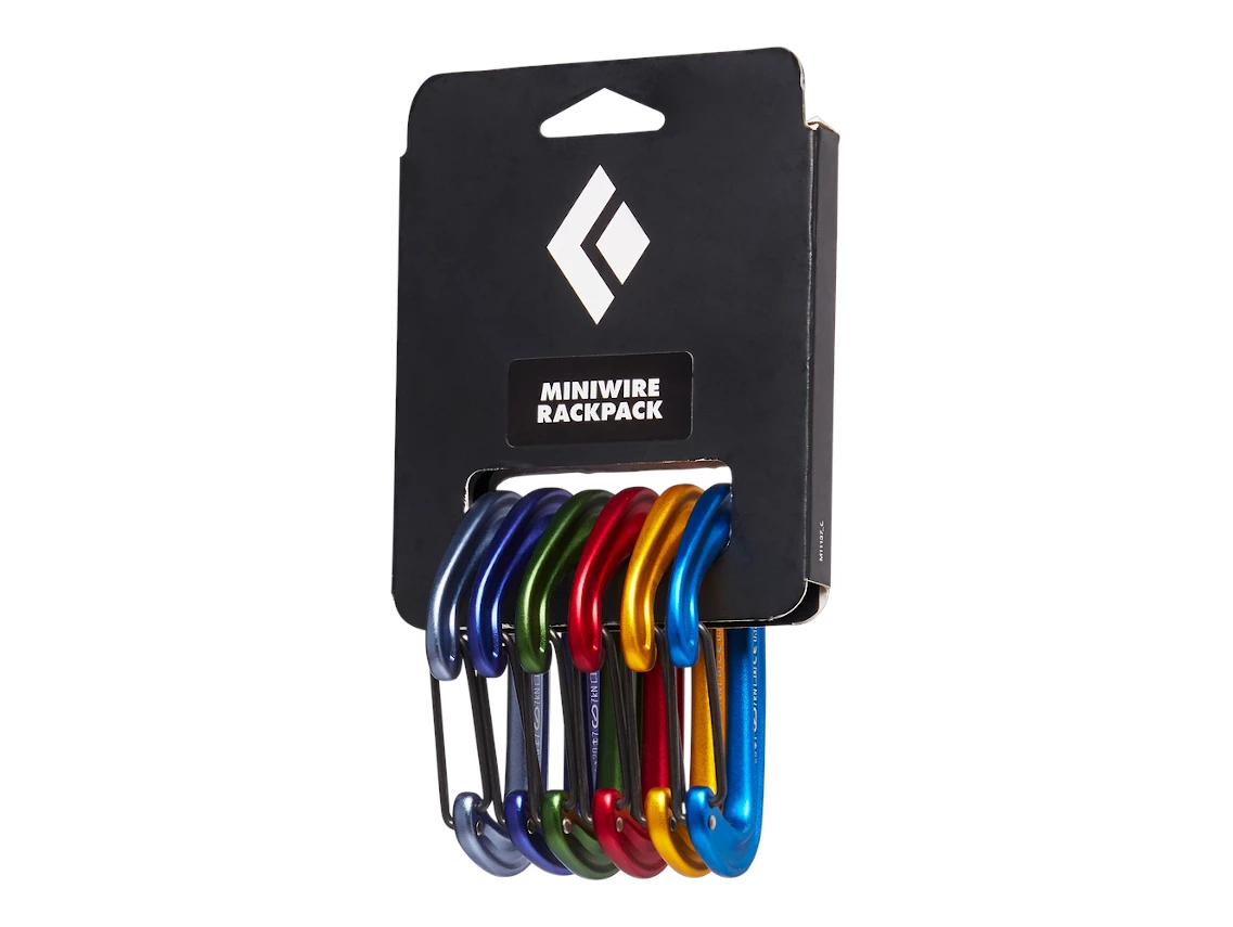 Engineered for the light and fast climber that’s counting every gram, the MiniWire Rackpack features six of the lightest, fully-functional carabiners in the Black Diamond line-up.