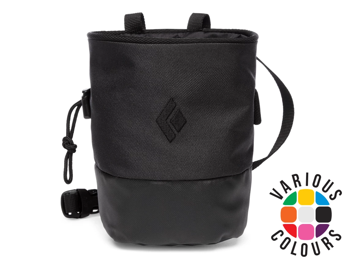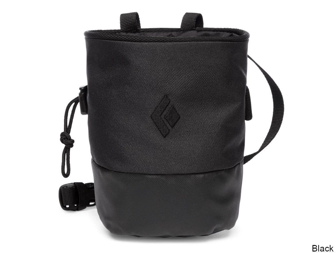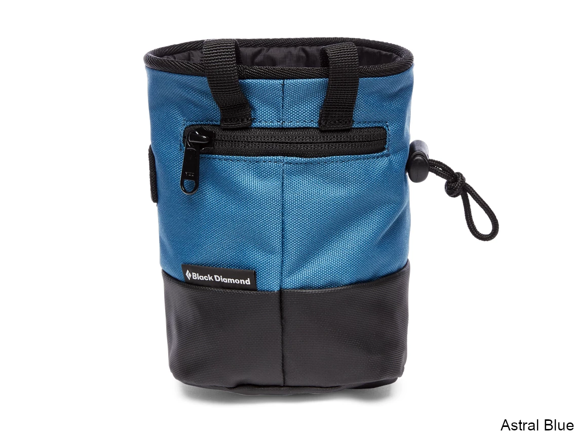 Their classic, cylinder-shaped chalk bag with a pliable wire rim and reinforced TPU lower, the Black Diamond Mojo Zip Chalk Bag also features a rear zippered pocket that holds small essentials like your keys, a route topo or a smartphone. The included webbing belt with a quick-release buckle provides fast on and off.