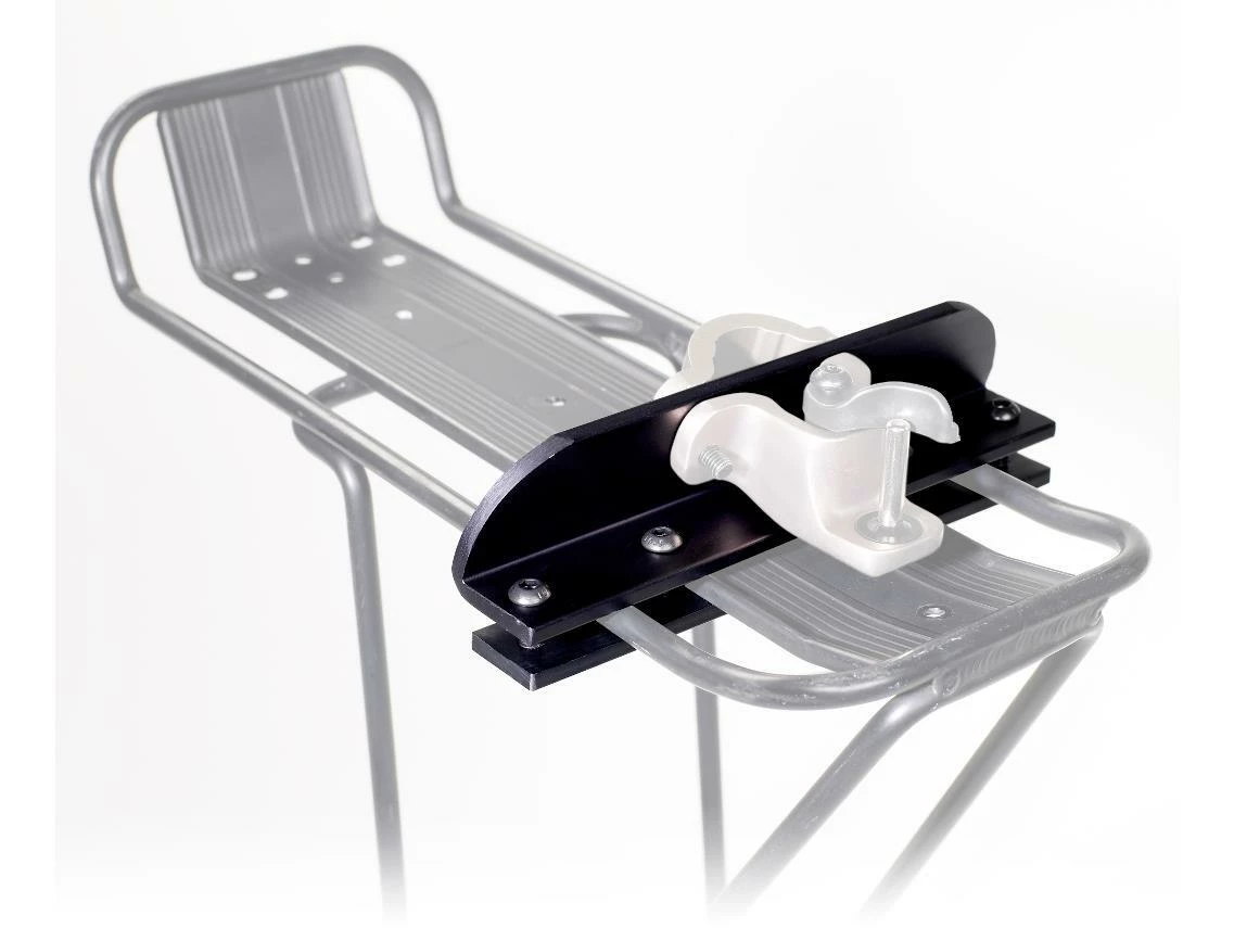 The Travoy Rack Mount enables the Travoy Hitch to mount on a rear rack, rather than the seat post.