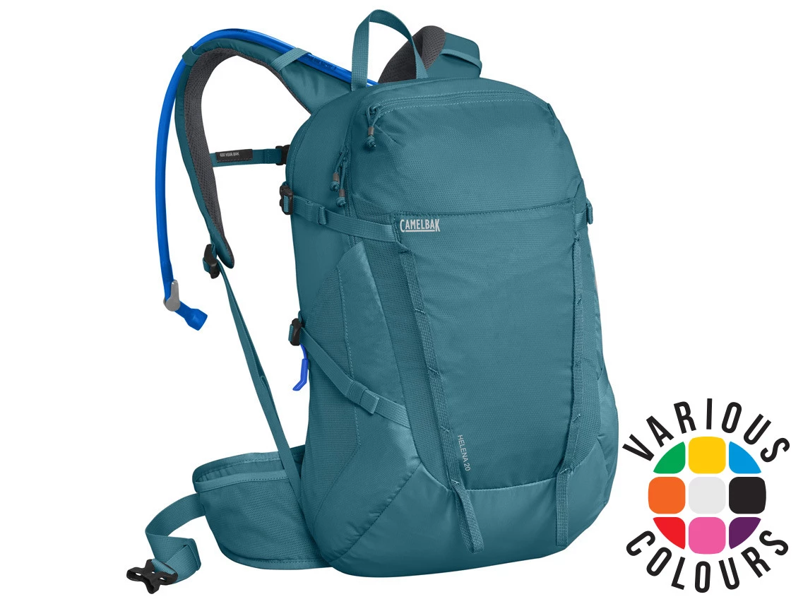 Designed clean and compact without sacrificing storage, The Helena 20 walks into every adventure with 20 liters total capacity and a 2.5L Crux Reservoir for all day hydration.