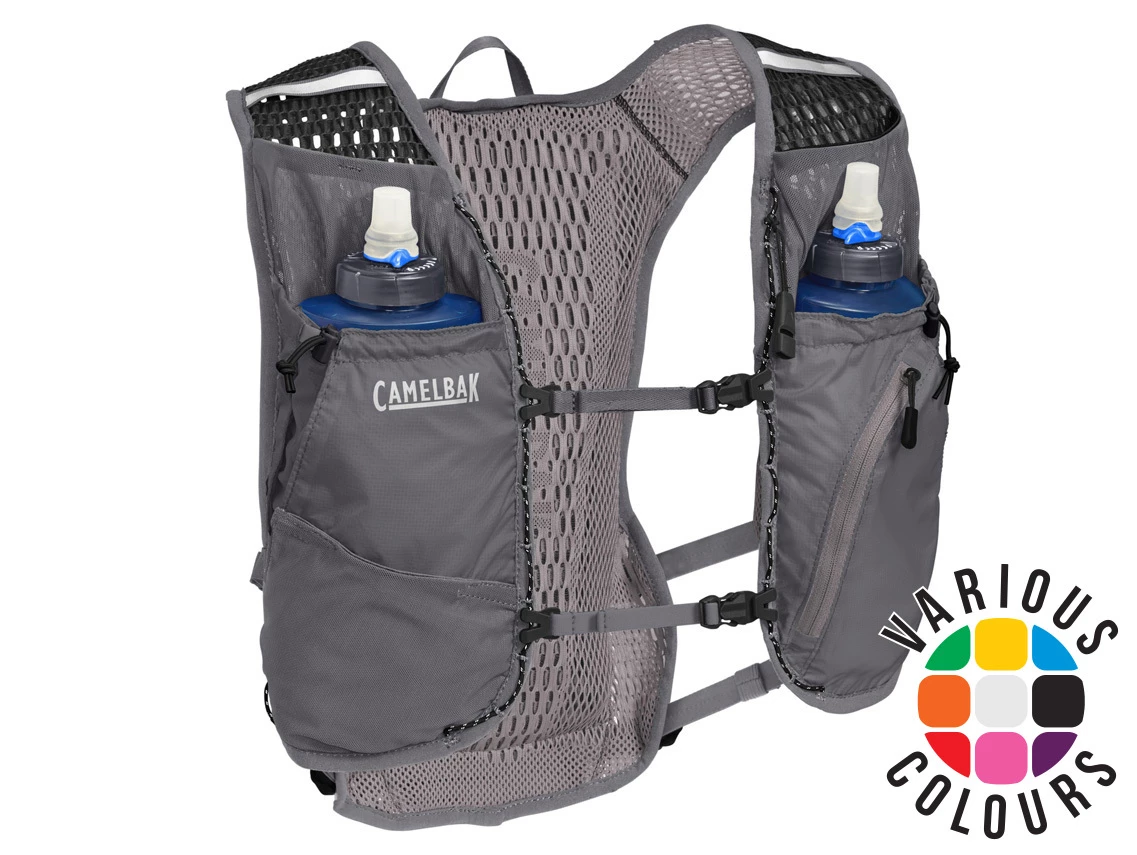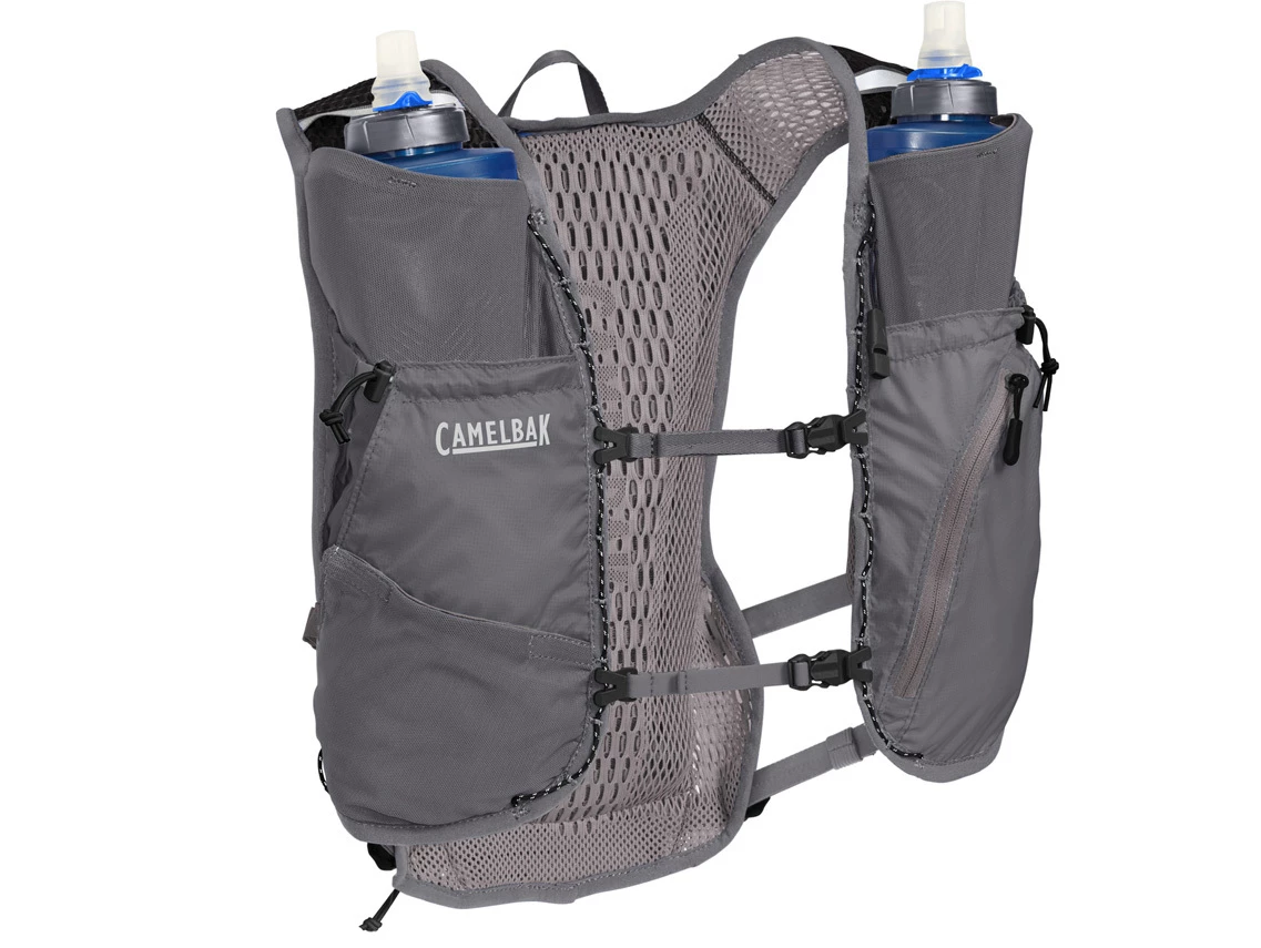 It’s lightweight and maxed out with safety features. There’s a secure cell phone pocket, built-in safety whistle, and attachment point for your trekking poles. Hydration at the ready with two Quick Stow flasks at the front of your vest for easy access. And since you’re always on the run, the ultra-lightweight material is treated with Polygiene® antimicrobial to keep bacteria at bay from one stretch to the next. Women’s specific fit.