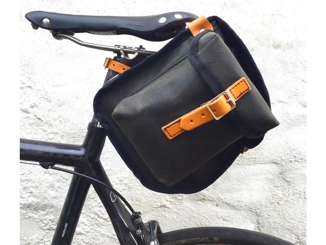 It has large leather patches sewn on the lined lid. These have slots that allow straps to be threaded through for attaching extra loads. The Pendle is good for day rides and light touring. The saddlebag comes with 3 leather straps to attach it to the seatpost and bag loops on the saddle.
