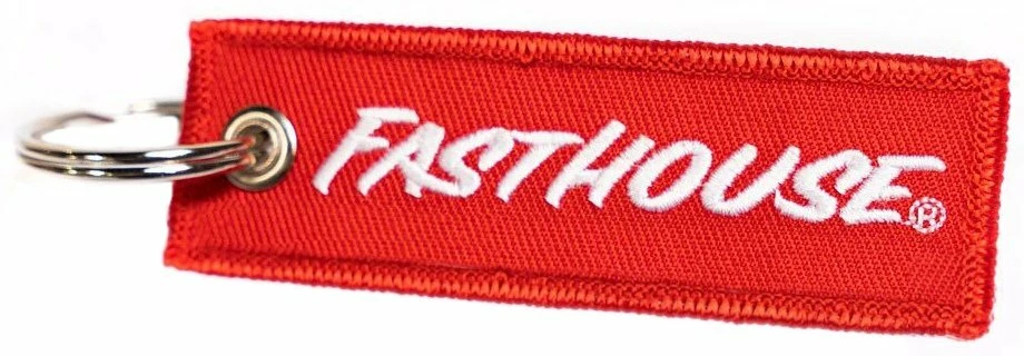 The Fasthouse logo keychain – red with large embroidered Fasthouse logo in white.