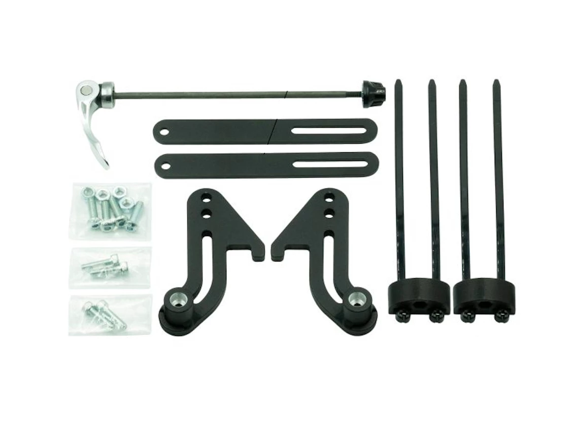This Fit Kit contains all the parts to mount an Old Man Mountain rack to the front of a bike with a 9 x 100 Quick Skewer.