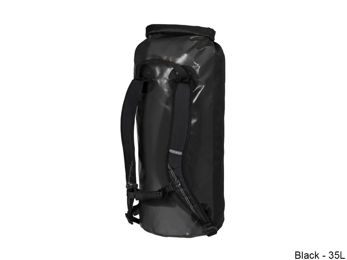 It is also a favourite luggage piece on motorcycles. The combination of rucksack and dry bag is by far lighter than a conventional backpack with carrying system. It is available in two sizes, and when empty, it can be rolled into a flat little package.