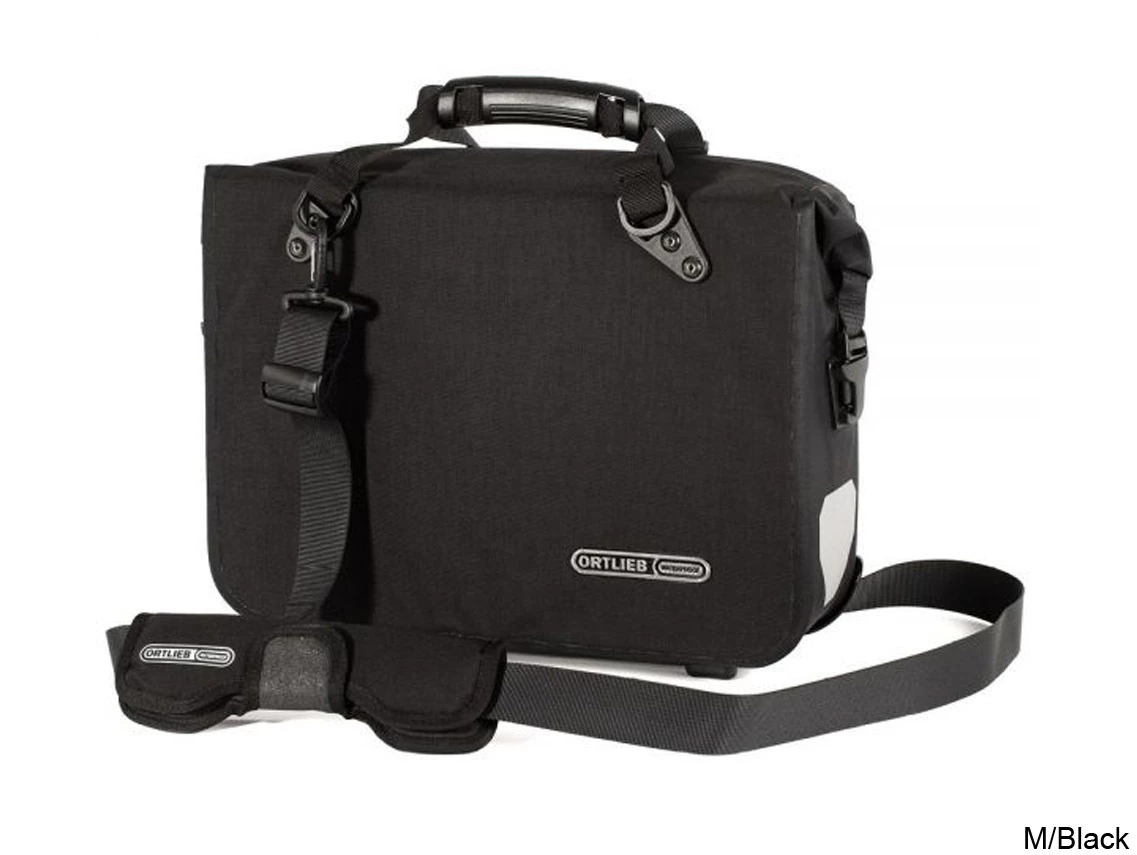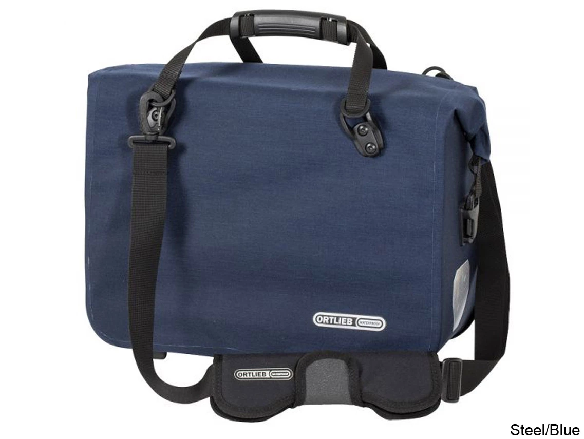 With a volume of 21 liters the bag easily takes two large files and laptop, as well as other office supplies needed for a day at work (smartphone, notebook, thermos etc.) Two subdivided inner compartments help keeping things organised. A waterproof and dustproof roll closure ensures safe transport in any weather. The bike briefcase features the convenient automatically locking Ortlieb QL2.1 system. The main fixing components can be fixed to any standard rack and remain there (on the right or left side).Â