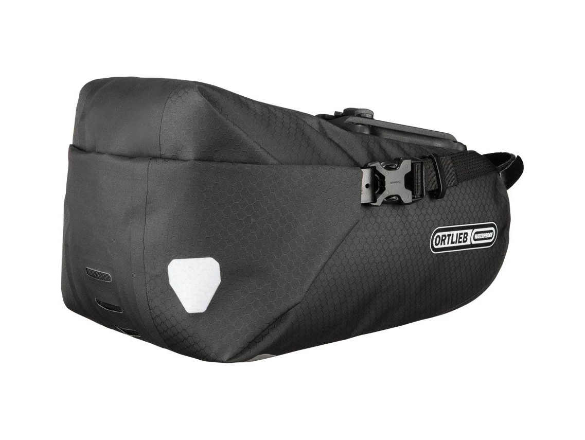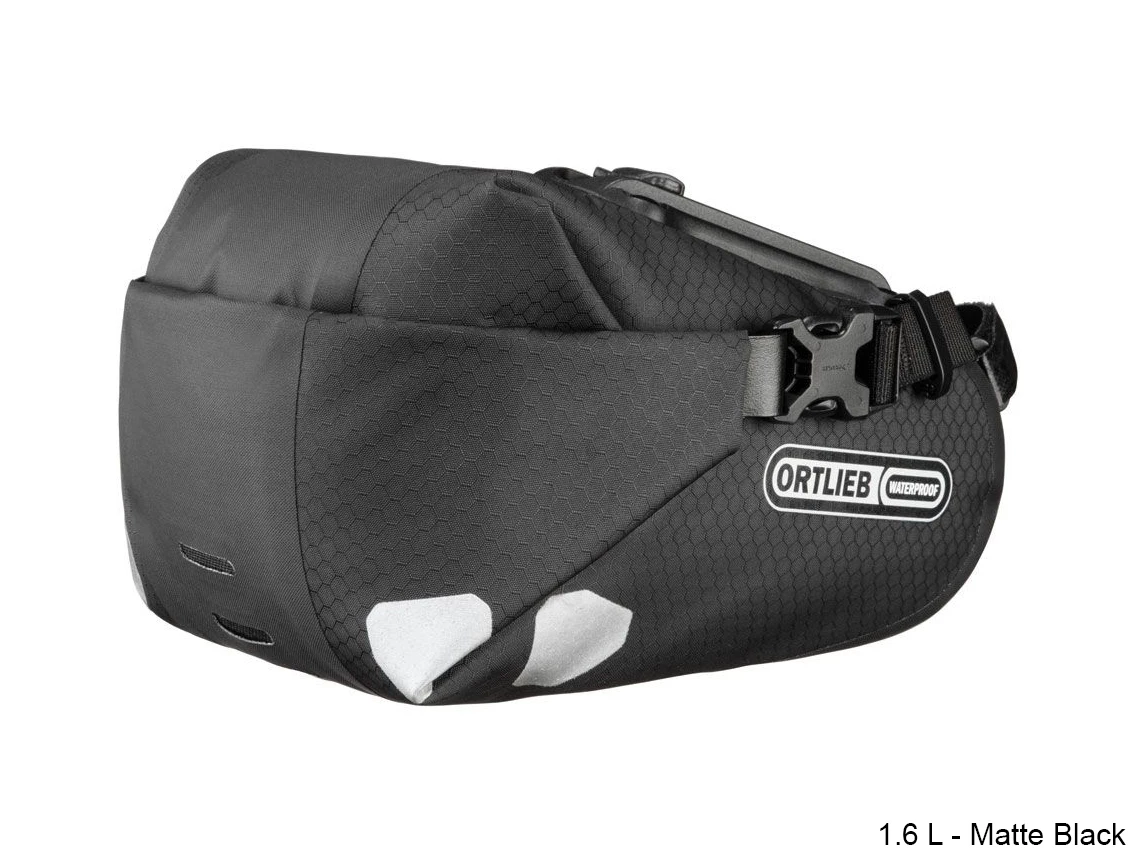 The Saddle-Bag Two is a redesigned Ortlieb classic, a seat pack that is so practical that it belongs on every bike tour! The 1.6-liter version (ideal for road bikes and mountain bikes) of the waterproof Saddle-Bag Two provides a secure place for a bike-repair kit, a smart phone or other items. The 4.1-liter version offers almost as much stowage space as a small backpack, making it an ideal supplementary pack when you have a lot to carry. Thanks to the pack’s roll closure and side buckles, everything you stow remains snugly packed and easy to access.Â