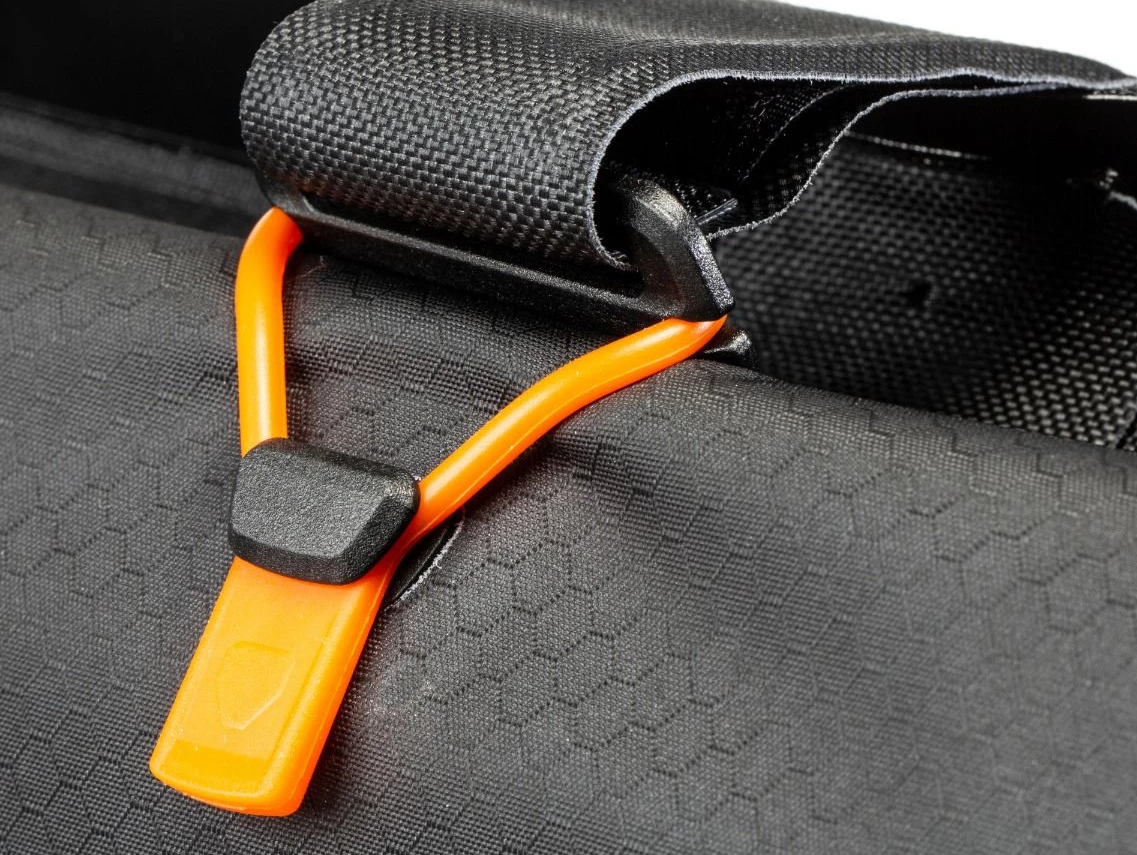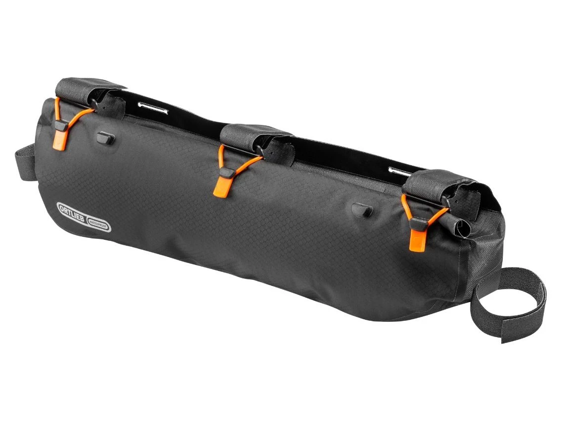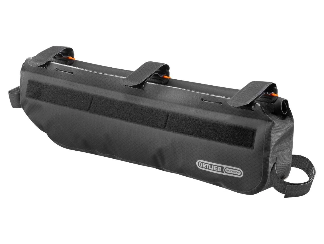 Part of Ortlieb’s bikepacking series, this bag with roll closure meets the IP64 standard for waterproofness, meaning your gear is fully protected from an involuntary bath. With its 4 liter volume, the Frame-Pack RC Toptube enables heavy equipment such as tent poles, tools or food to be carried within the frame triangle, maintaining the bike’s low center of gravity. The customizable, sturdy and strong Velcro fasteners enable simple and easy fastening, and an uncomplicated installation.