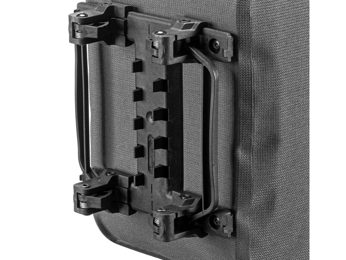 Thanks to the Top-Lock adapter, initial installation is done in a jiffy, and during use, attaching and detaching the bags from the luggage rack is child’s play due to the unlocking handles on both sides.Â