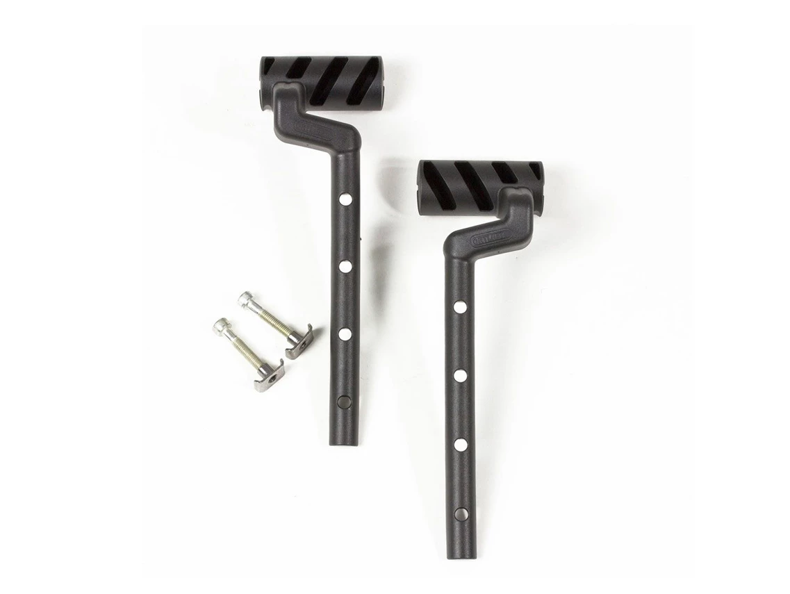 The multifunctional two part mounting support creates additional space on the handlebar, e.g. for light, speedo, navigation device or e-bike display. The set consists of a left and right support; it can be mounted as a pair (e.g. required for Bosch e-bike displays) or individually. The supports are adjustable in height and allow simultaneous use of a battery light and an Ultimate handlebar bag.