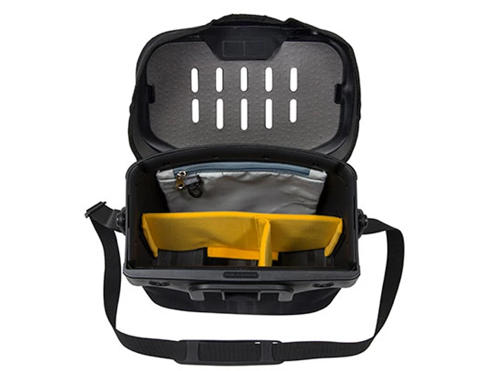 GPS or other touch screen mobile devices can be safely stored inside the lid, and easily operated through the transparent waterproof window. Opening the magnetic closure lid is fast, easy and single-handed. The main compartment is subdivided and includes a zippered internal valuables pocket and a key-holder snap hook. Padded removable Velcro dividers allow flexible positioning. The waterproof bar bag can be carried with the removable shoulder strap. The Ultimate6 Pro offers double anti-theft protection; once fixed to the handlebar the lid can be locked with a single turn of the key and the bag itself is locked to the adapter with the integrated lock.