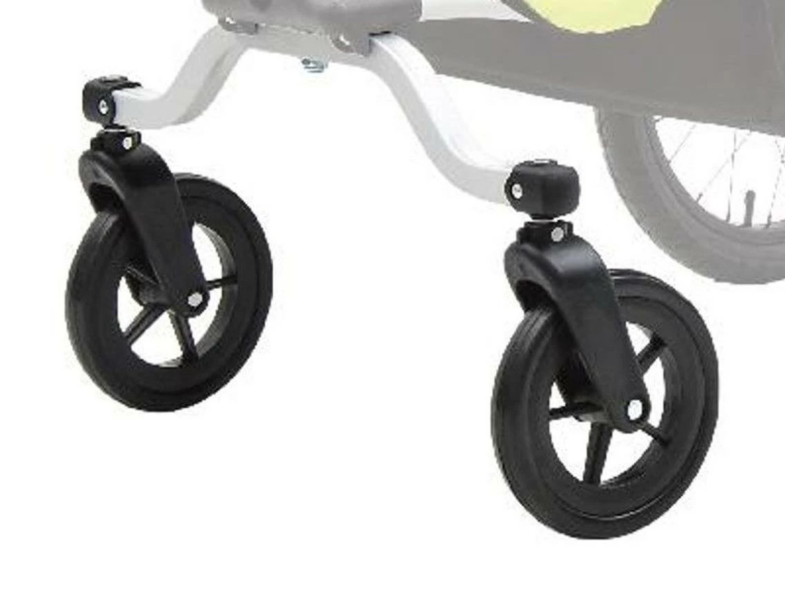 8″ dual wheel set attaches to front of Single Trailer (PTS2I1) to allow it to be used as a stroller. NOTE: this item is the front wheel set only.