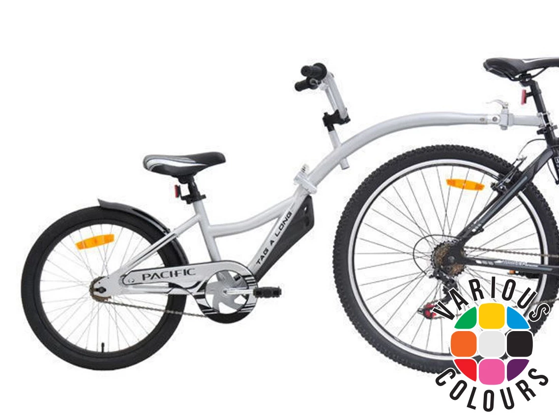 The Pacific Tag A Long Trailer Bike is a safe and fun way to introduce your child to the world of cycling as they become accustomed to the feel of the pedals and holding on to the handlebars.