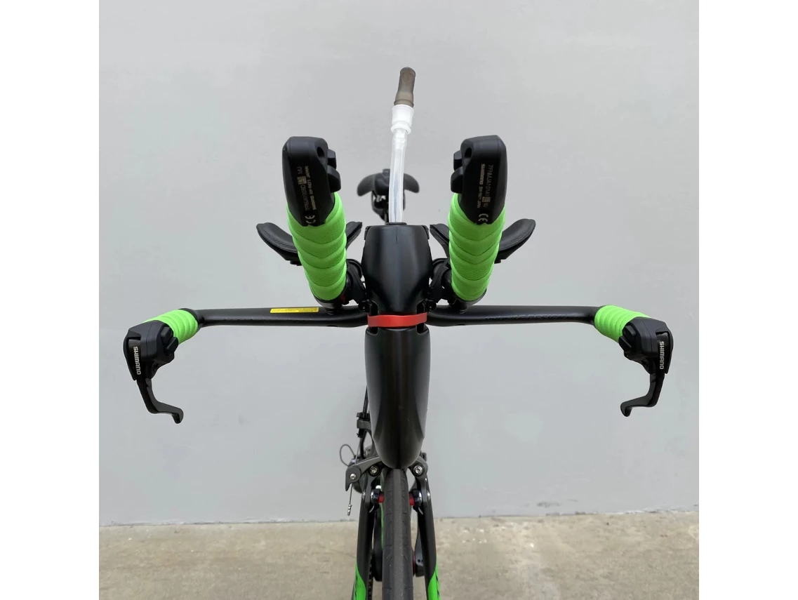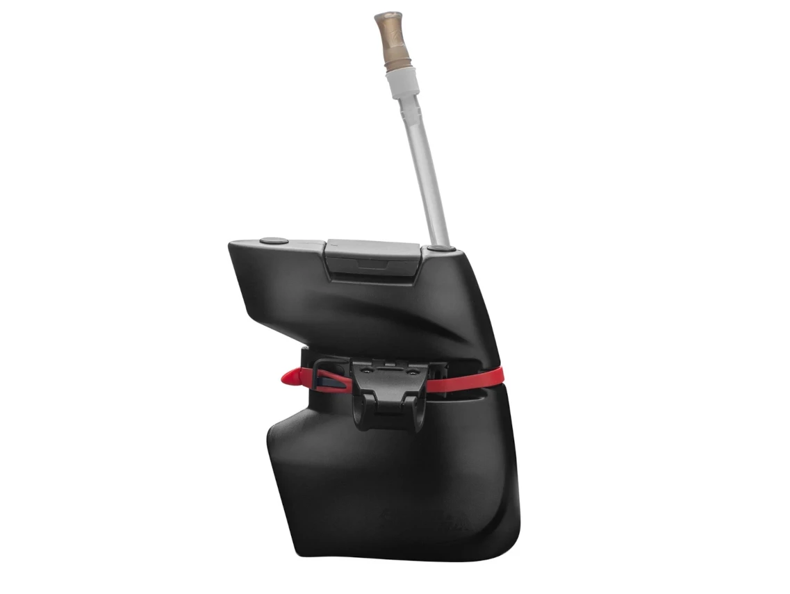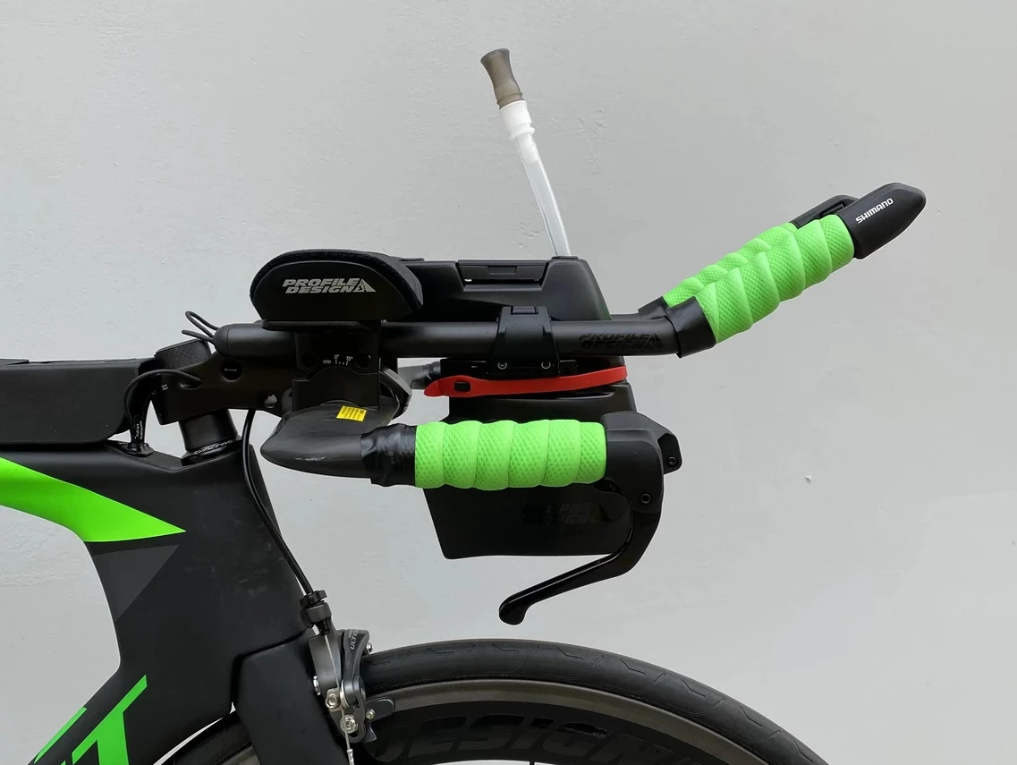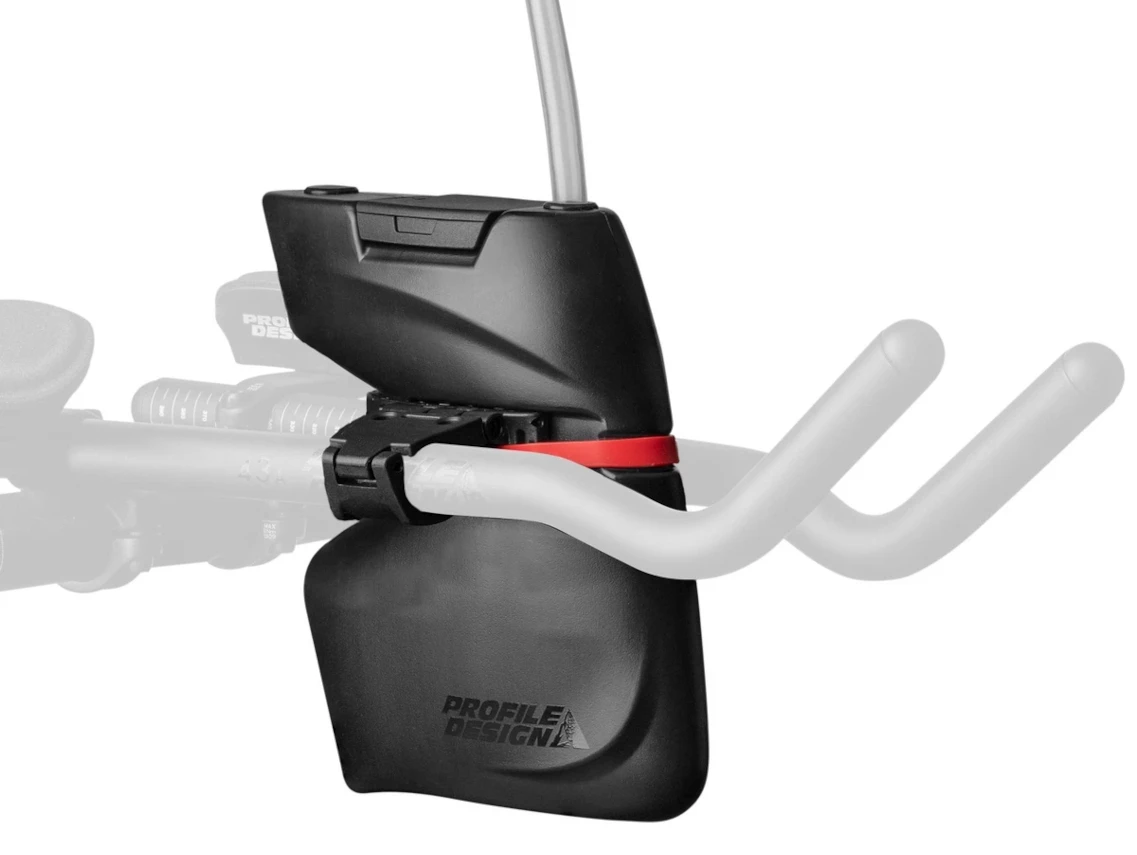 This Front-end hydration system easily mounts between aerobars so you don’t have to deviate from the aero position to stay hydrated.