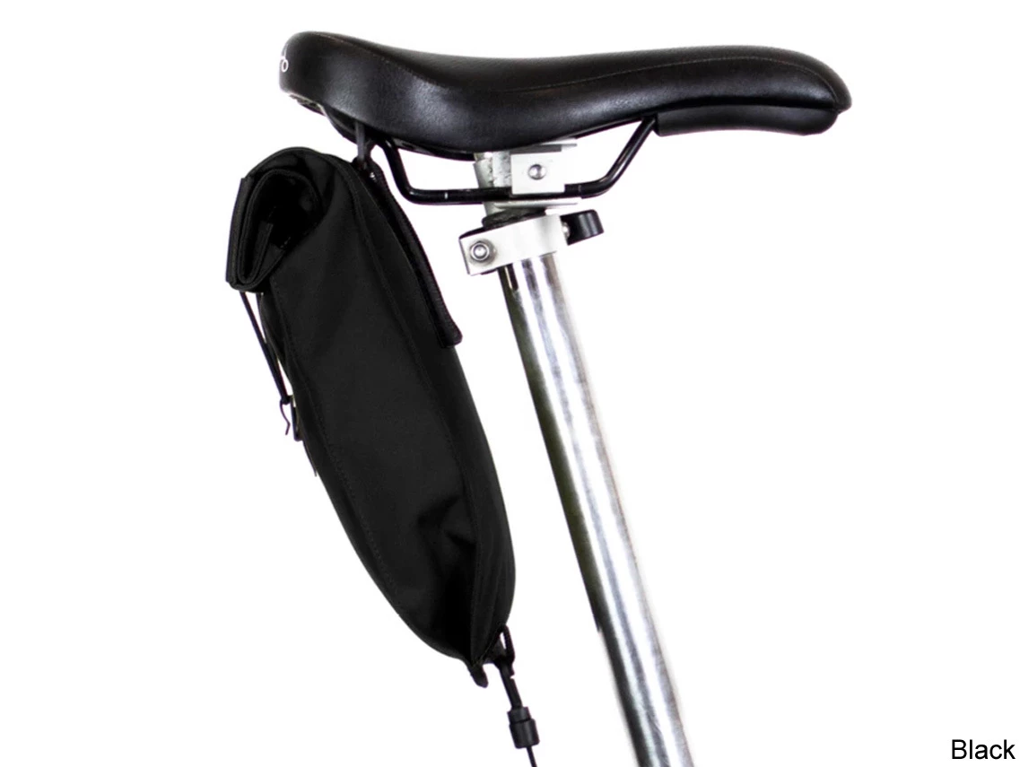 Constructed from waterproof fabrics, it comes in two sizes to accommodate a range of gear, from clothing, to off the bike footwear, to tools. Both sizes are tape sealed and completely waterproof. The bag also comes with an extendable bottom strap which fits easily around the suspension block on all Brompton bicycles.