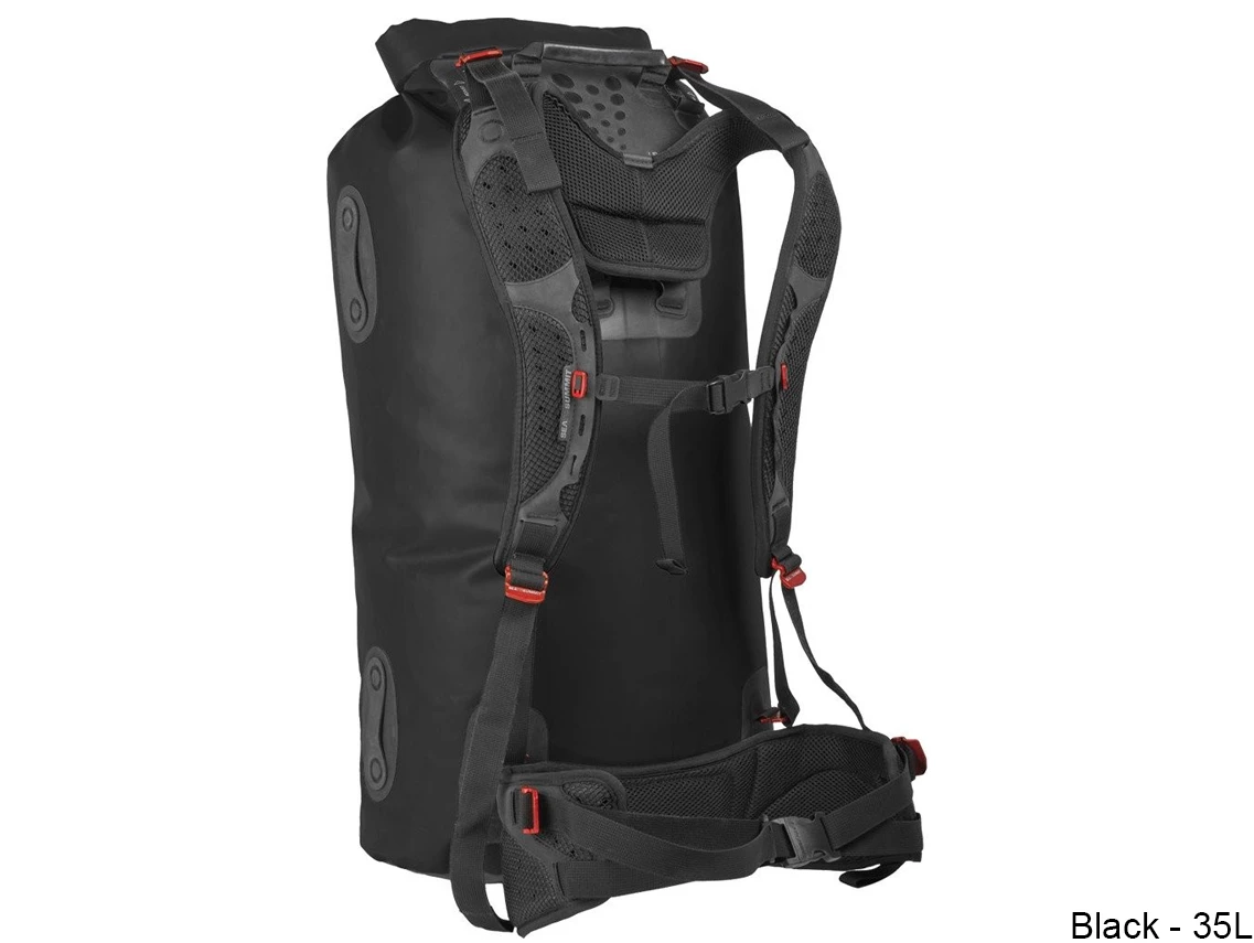 The Hydraulic Harness is an open construction of EVA foam and air mesh, allowing plenty of air flow and rapid drying without sacrificing any comfort. The harness attaches to compatible Hydraulic Dry Bags with a series of 7075-T6 aluminum buckles as tough as the bags themselves.