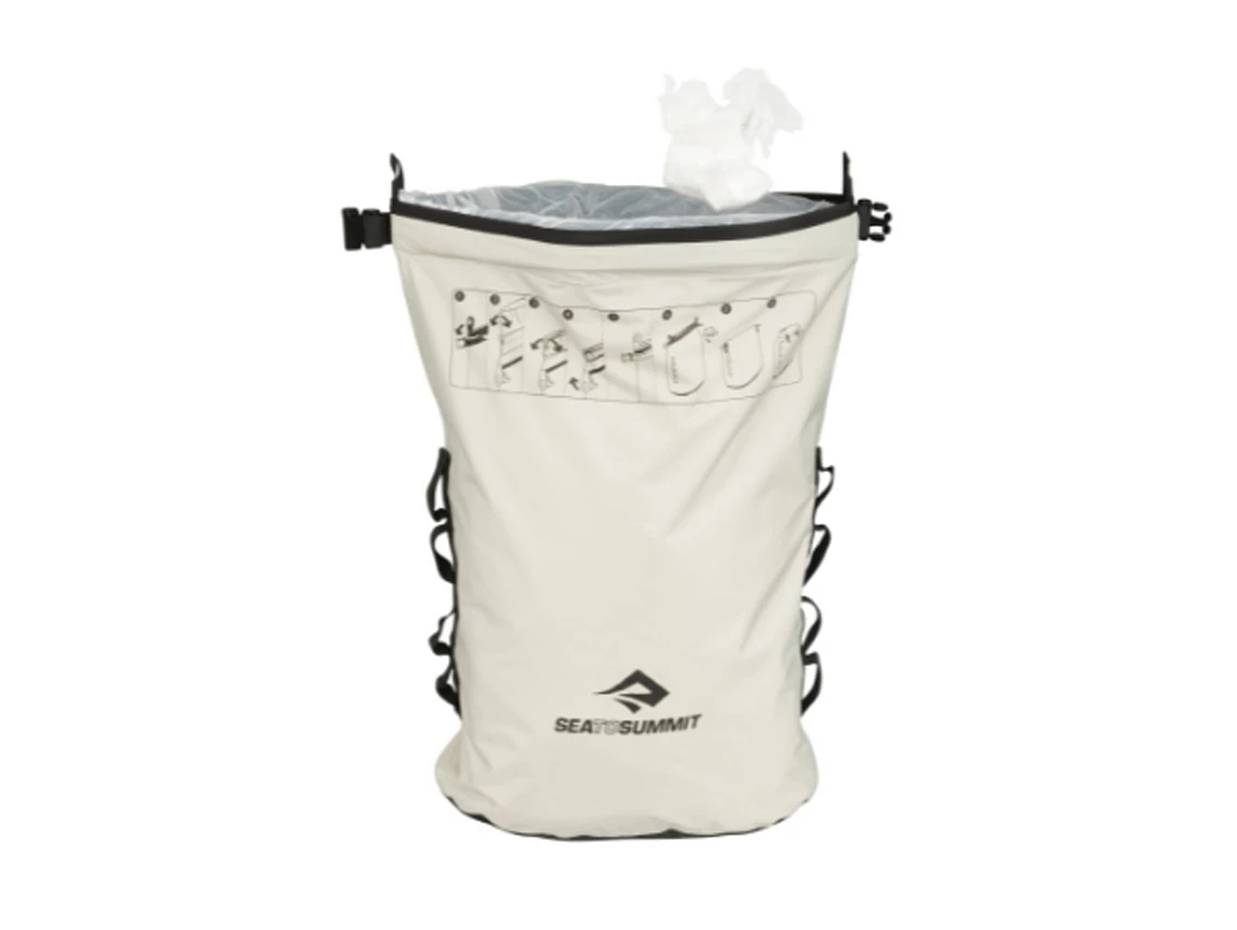 Designed with a unique roll top closure that accepts a disposable garbage bag liner, the Trash Dry Sack is great as a soft garbage container in the field, in a boat or in your car.