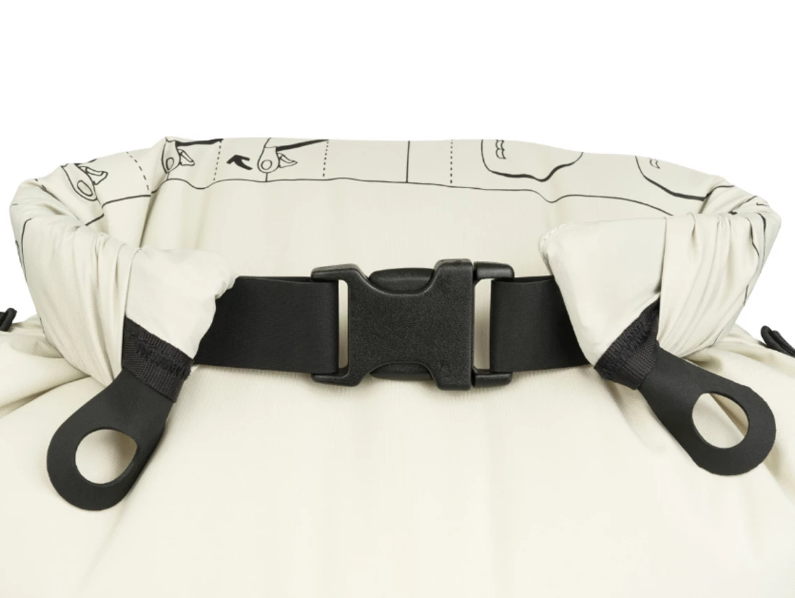 Roll the top down to prevent any leakage while transporting. Hypalon clip-in loops allow it to be hung from a tree or tied to the outside of a pack.