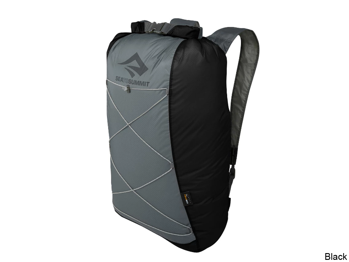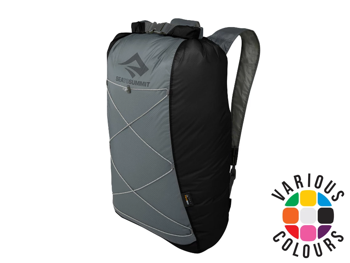 We use two different versions of 30D Ultra-Sil: a Sil/PU and a Sil/Sil version depending upon its purpose and use. Sil/Sil 30D high-tenacity Nylon with silicone impregnated on both faces. Silicone impregnation works really well with lightweight fabrics as it improves fabric tear strength, abrasion resistance and packability. Siliconised fabric has a measure of self-healing when punctured. This fabric has a water resistance of 600mm and is used where a product needs to be water-shedding and packable. They use Sil/Sil Ultra-Sil their packable Ultra-Sil Day pack, Duffle, Shopping bag and Sling Bag. Sil/PU 30D high-tenacity Nylon with Silicone impregnated on the outer face and a polyurethane (PU) coating on the inside. It has a water resistance of over 2,000mm. The Silicone outer works really well for water shedding and to create a slippery surface for easy packing. The PU coating on the inside improves the waterhead rating and allows for sealing of the seams. They use Sil/PU Ultra-Sil in products that need to be waterproof, such as their Ultra-Sil dry day pack, Ultra-Sil dry sacks, Ultra-Sil pack liners and many other products.