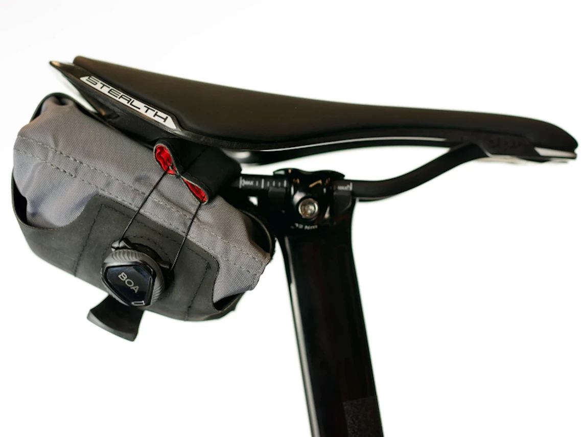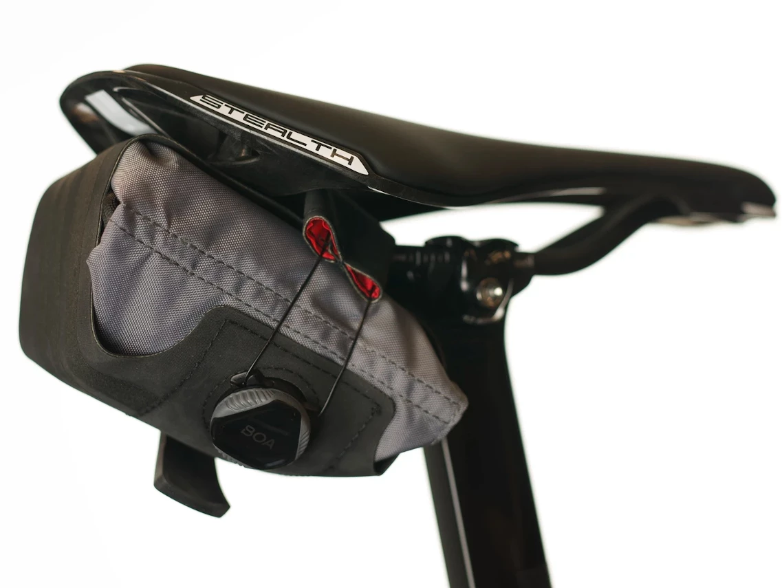 The Silca Seat Roll Asymmetrico Saddle Bag is for the uncompromising cyclist who appreciates the meticulous packing of and the organised work area of an unfurled seat roll, plus the quiet ride only possible with the 15x stronger than Velcro power of the BOA closure system (and those who hate rattling, swaying, swinging seat bags dangling off the back of the saddle!).