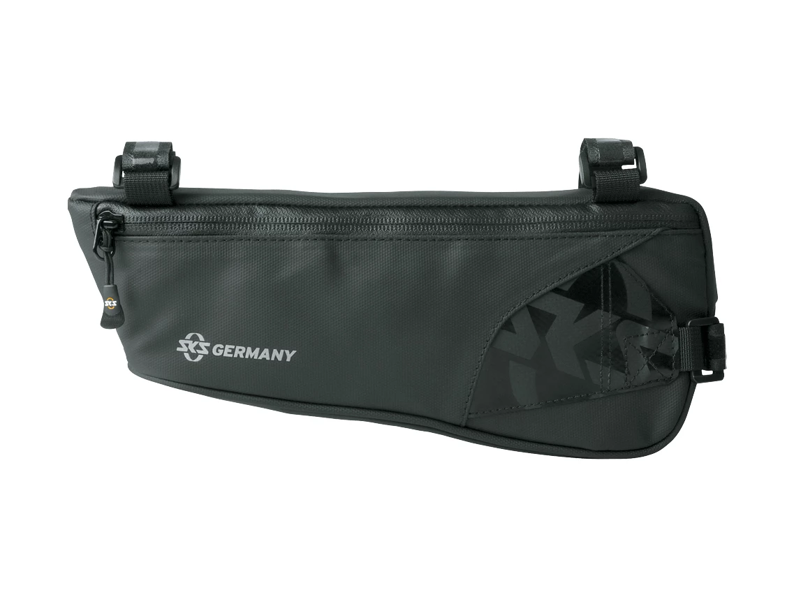 Durable materials made from rubberised, water-repellent fabric make the Explorer bicycle bag a must for every mountain biker. Reflective elements like the SKS logo add safety. Besides providing plenty of space for tools, replacement tubes, and personal items.