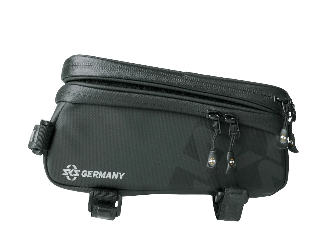 The bag is attached to the top tube using robust, hook and loop fastening straps. The features also include laminated watertight zippers with the ergonomic EasyZip technology and orange coloured inner lining which makes content items easy to find.