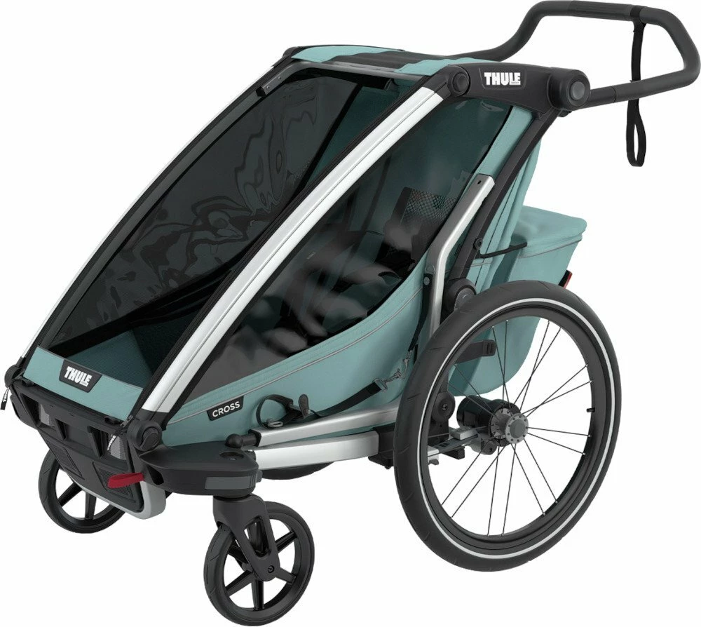 Thule Chariot Cross gives you the freedom to enjoy almost any outdoor adventure withyour child. It is designed for active families who want a versatile, tough, and stylish bike trailer, and who love being outdoors all year round. The all-round trailer and stroller offers comfort and flexibility for families with an active lifestyle, and the optional Jogging Kit makes it a great training partner. An extra large cargo bag provides additional space for what you need to bring. Includes Standard and Comfort Package.