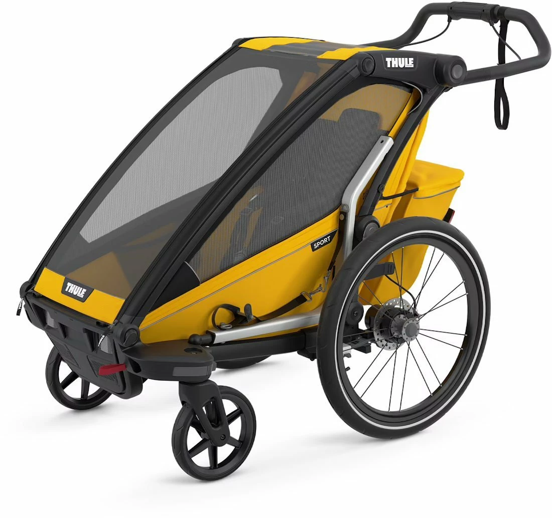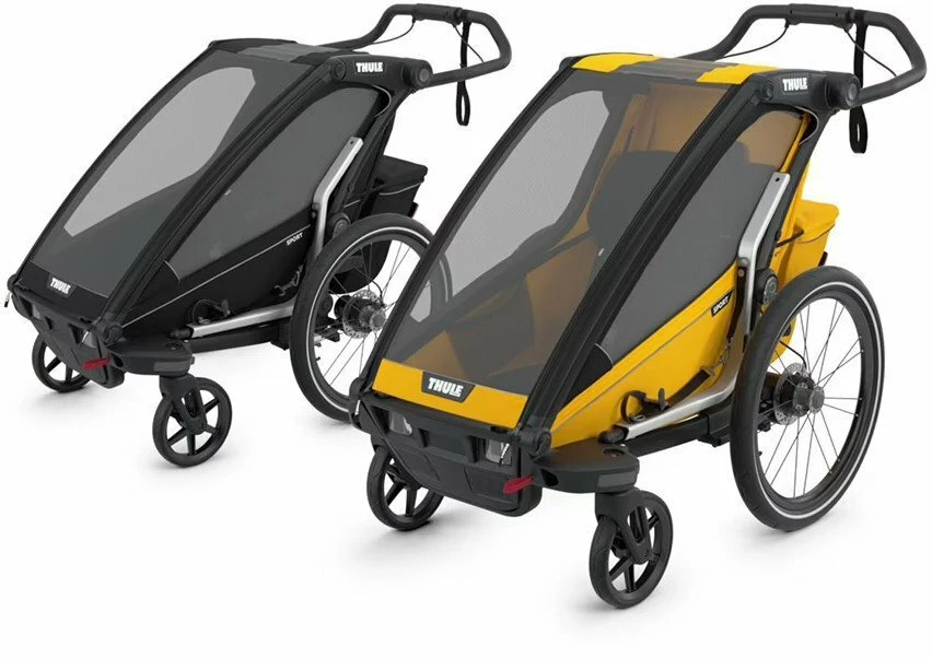 Comfort for the kids and superior performance for athletic parents. With the optional Jogging Kit accessory, your Thule Chariot Sport is the ultimate bike trailer and jogging stroller in one. Conversion between activities is quick and easy thanks to the Thule Click n’ Store and Thule VersaWing systems. Thule Chariot Sport is designed to excel in every aspect, from ease of use and clever features to safety and durability. Includes Standard, Comfort, and Sport Package.