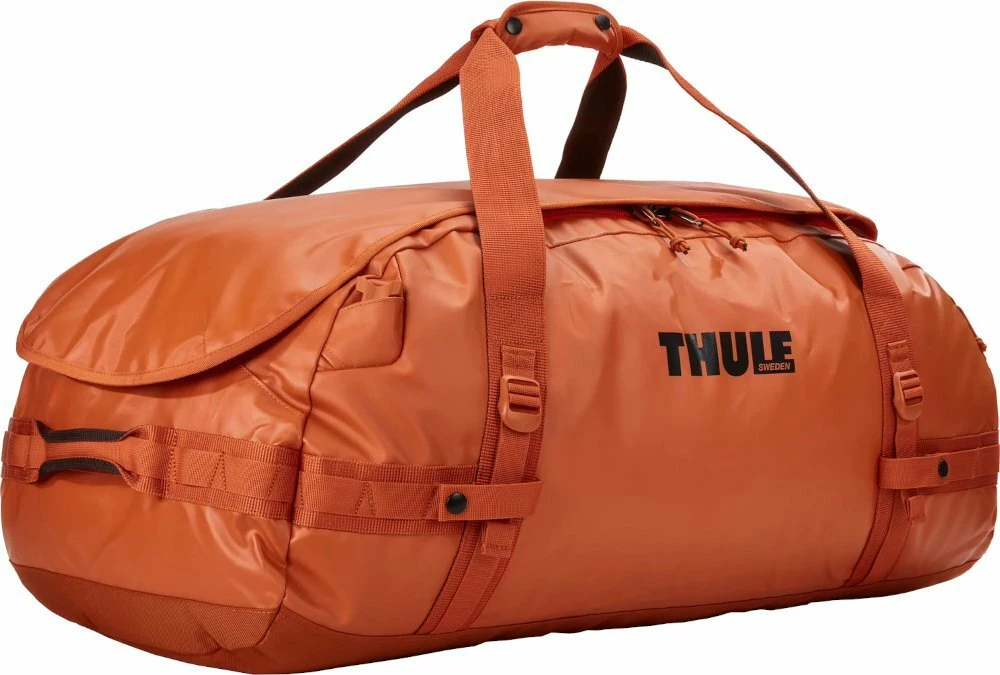 Thule Chasm 90L duffel bag is rugged, weather-resistant, and can be converted into a backpack with shoulder straps that tuck away when not in use.