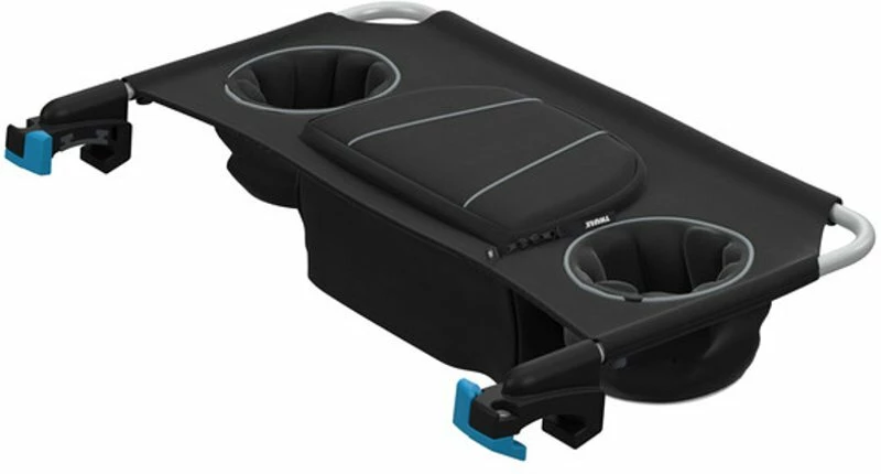 Add a zippered pocket and built-in cup holders to your Thule double child carrier.