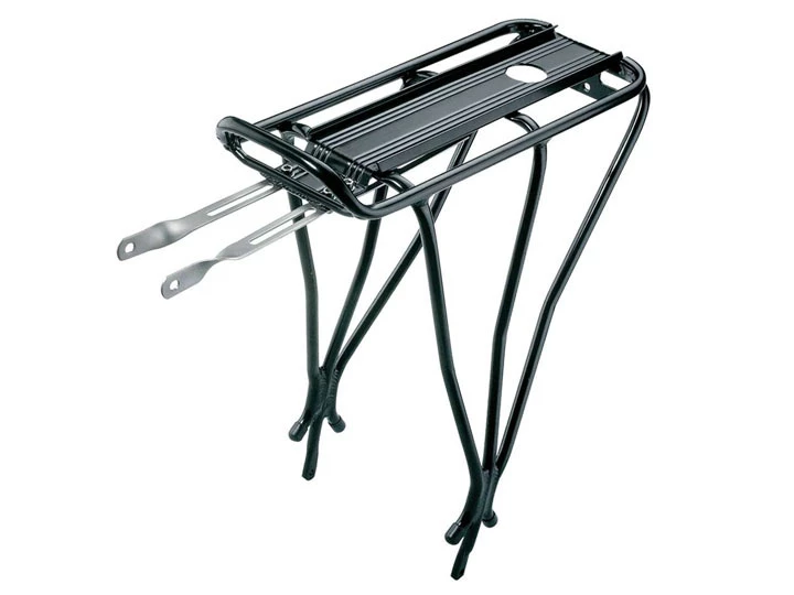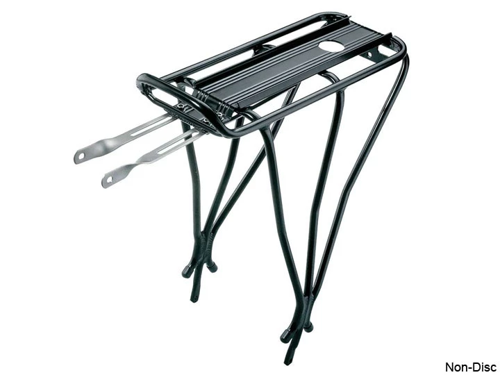 Strong tubular aluminum rack with QuickTrack™ system for all Topeak MTX TrunkBags and MTX Rear Baskets. Fast, easy mounting of BabySeat™ II without use of tools. Rack is designed for compatibility with disc brakes.