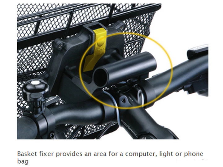 A sturdy handlebar-mounted metal basket for shopping trips, quick jaunts around town.