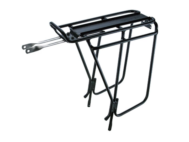 Features dedicated pannier mounting bars for quicker attachment and removal of pannier bags from rack
