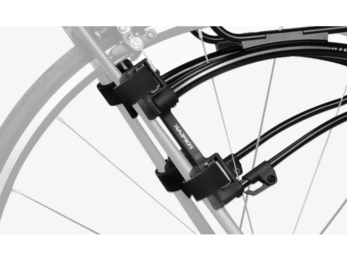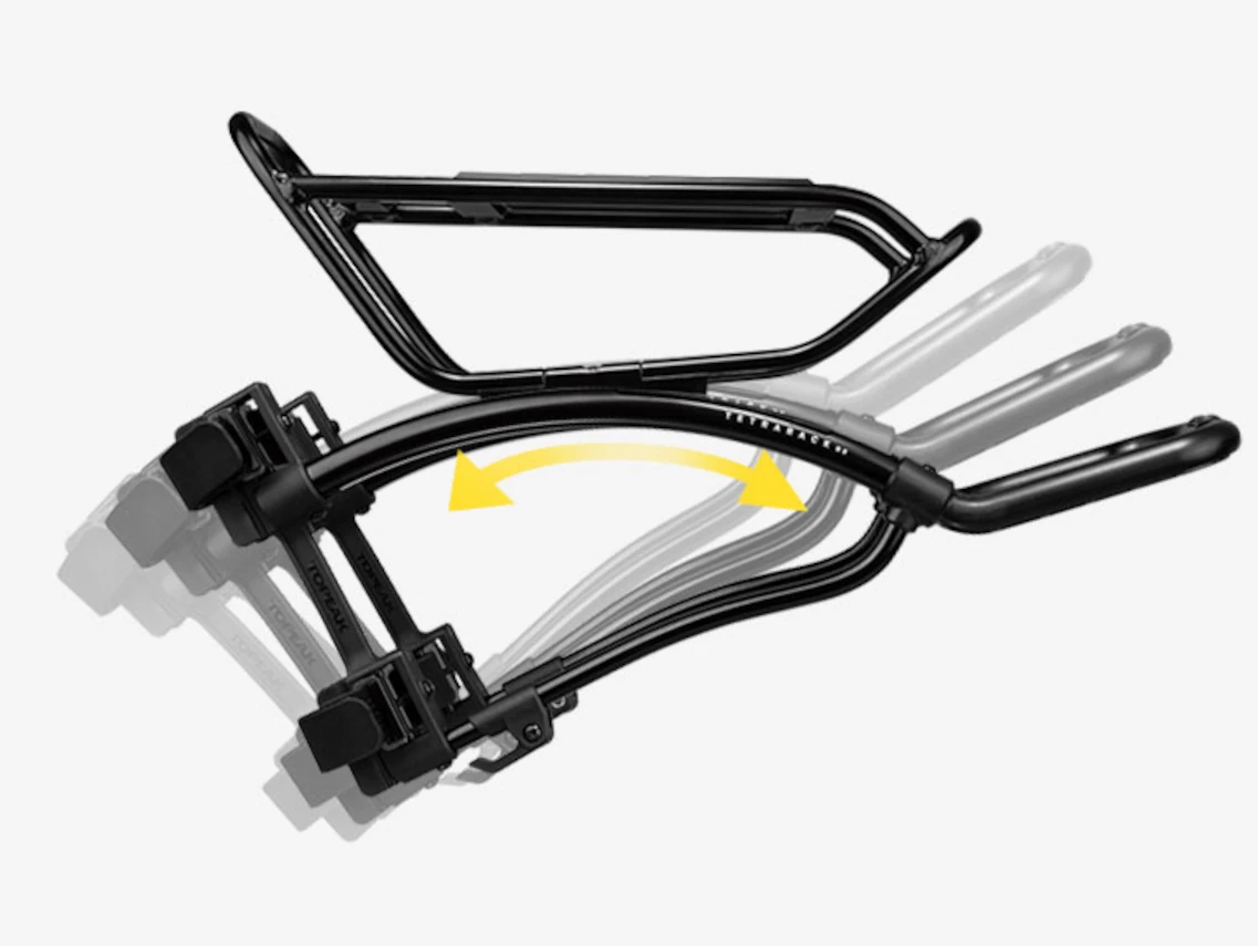 This one-size-fits-all rear rack features an innovative top plate that adjusts to level independent the seatstay angle. Integrated QuickTrack system allows Topeak TrunkBags to slide and lock into place and release with a the push of a button. Innovative hook and loop strap mounting system cinches down tight to keep the load stable and allow mounting on a wide range of bikes.