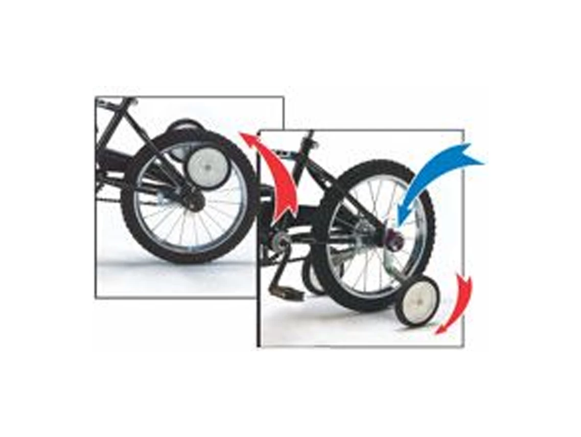 Does your child ride with training wheels? These unique training wheels can be swiftly rotated up and out of the way for use with the Trail Gator Tow Bar and down again with ease when your child is riding independently.