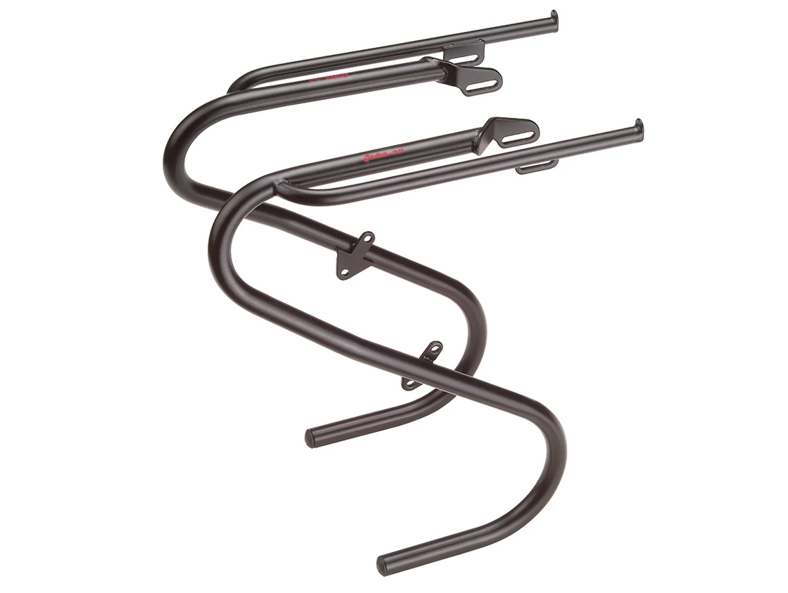 If your fork has inside and outside eyelets, then the DUO is your choice carrier. Duo and Tara tolerate extreme loads and almost all panniers.