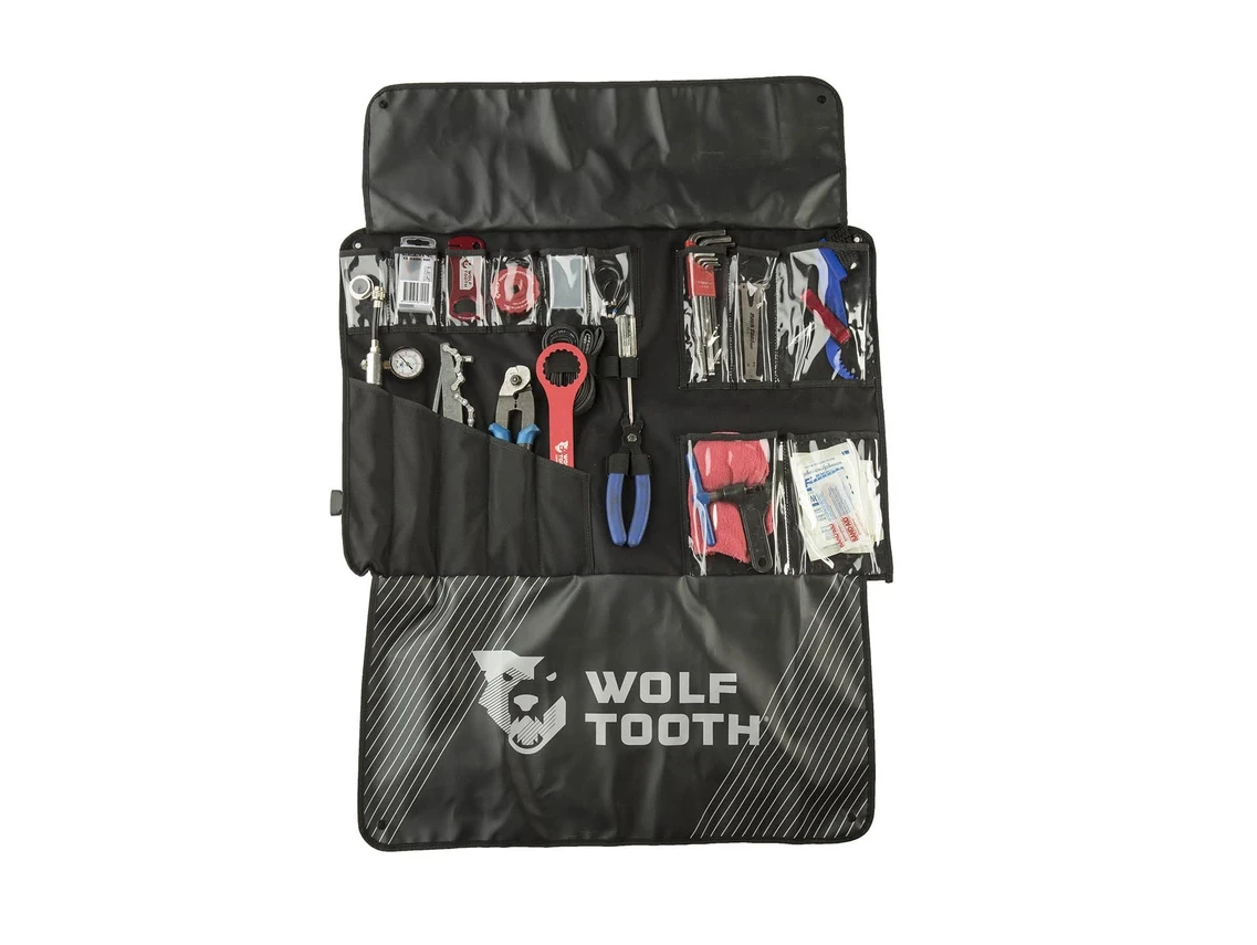 he Wolf Tooth team have designed the most full-featured bicycle tool wrap available. Designed to fit all your essential tools, and make them easily accessible, this tool wrap will ensure trailside repairs are quick and efficient.