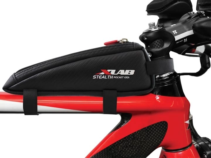 The XLab Stealth pocket 400c offers universal, top tube strap-mounted storage that features sleek design and element-deflecting material that stands tough against perspiration and electrolyte drinks.