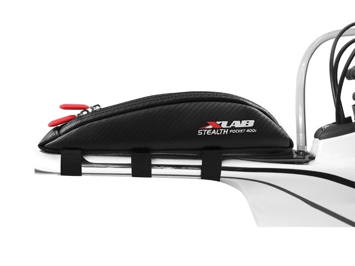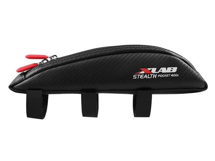 The XLab Stealth pocket 400c offers universal, top tube strap-mounted storage that features sleek design and element-deflecting material that stands tough against perspiration and electrolyte drinks.