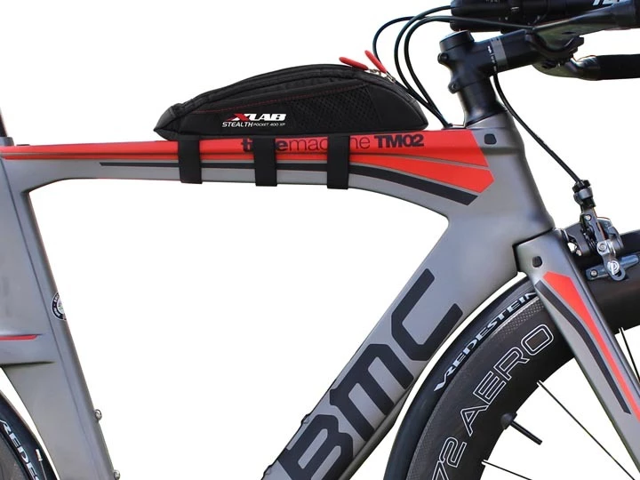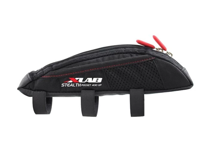 The XLab Stealth Pocket 400XP is a universal nutrition bag that mounts to top tube via three straps, for secure storage.