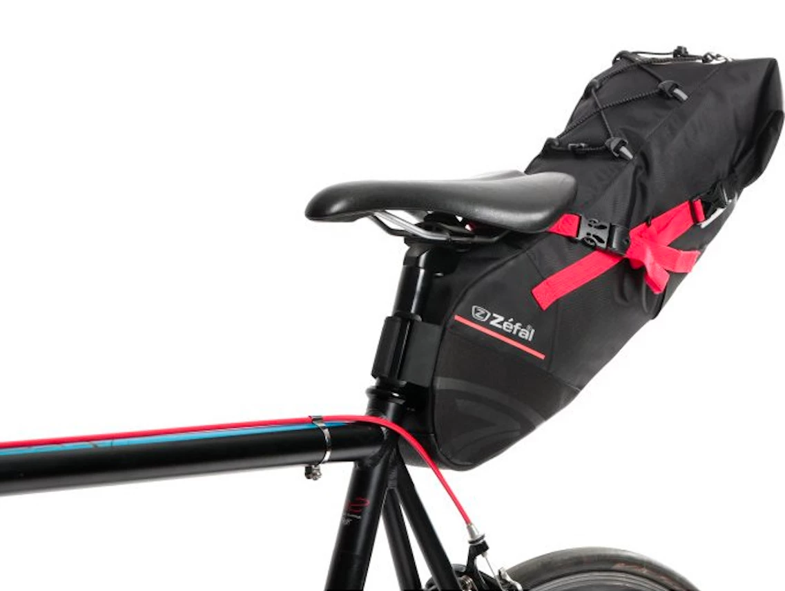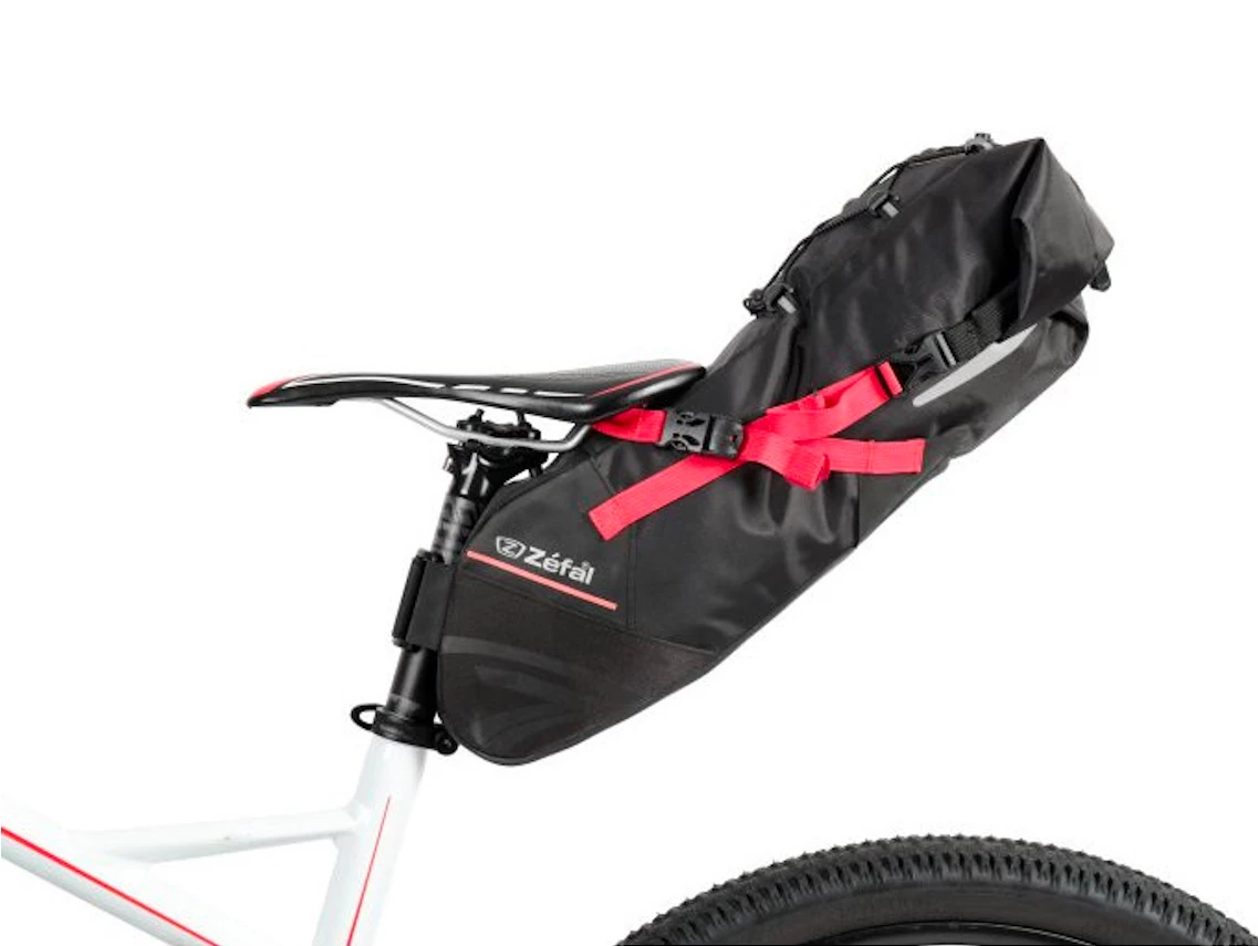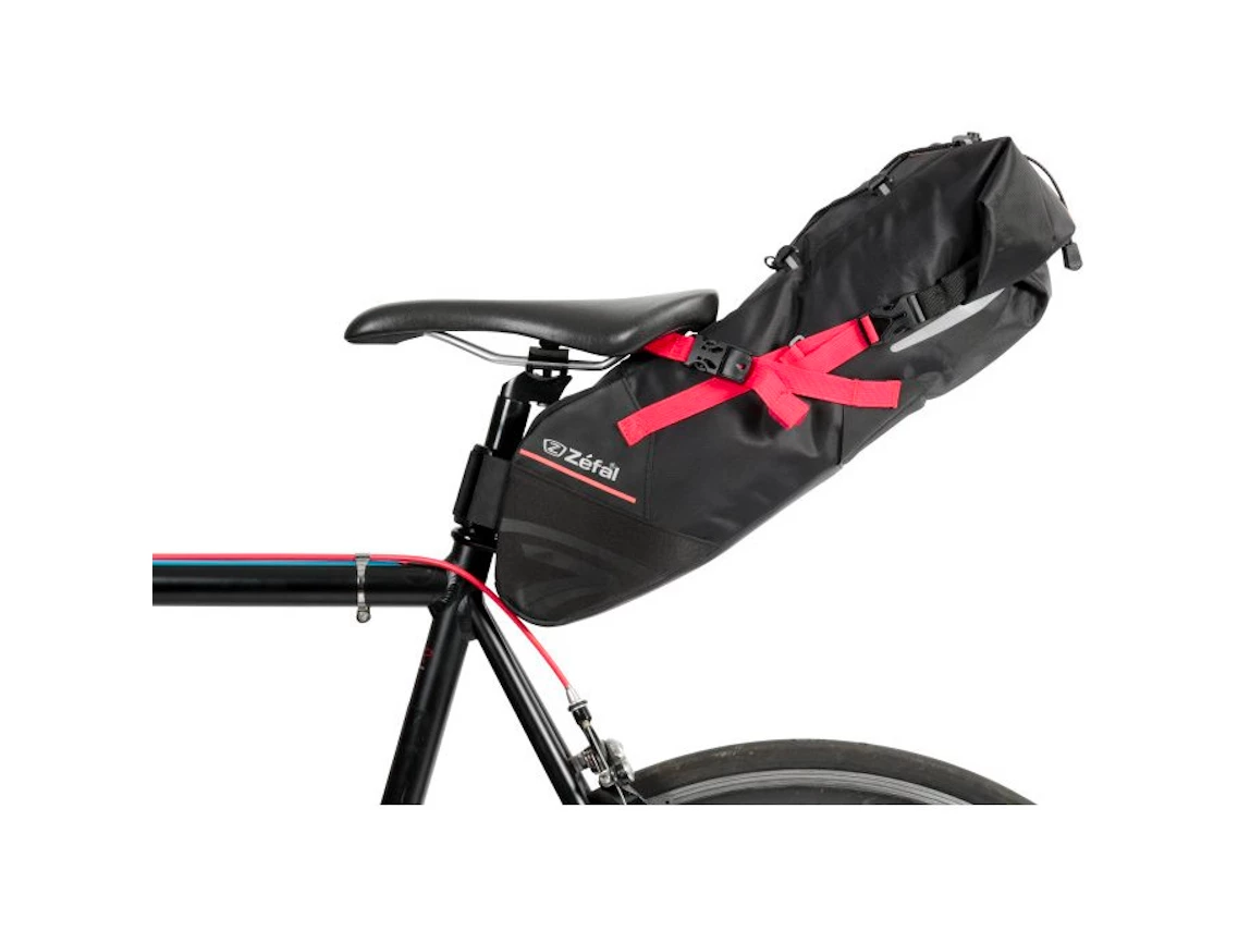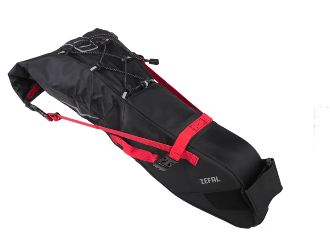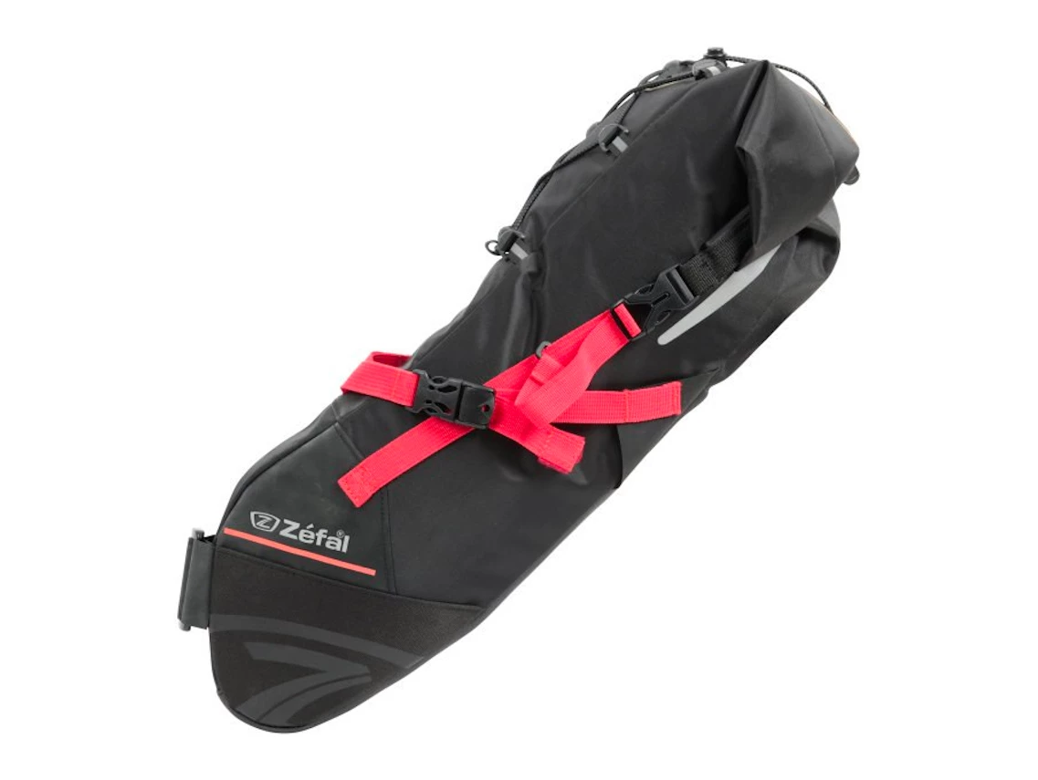 Equipped with several durable self-adhesive straps and anti-tear material on its base, this bag attaches to the saddle rails and seat post for optimal weight distribution on the bicycle. With a volume that can be adjusted from 5 to 11 litres, this bag is designed for cyclists doing light tours or competing in endurance competitions. Equipped with reflective strips and an attachment loop for lights, the Z Adventure R11 is ideal for carrying light, large-sized items such as clothing. The folding closure and waterproof fabric with heat-sealed interior can safely carry all the equipment needed for a tour.