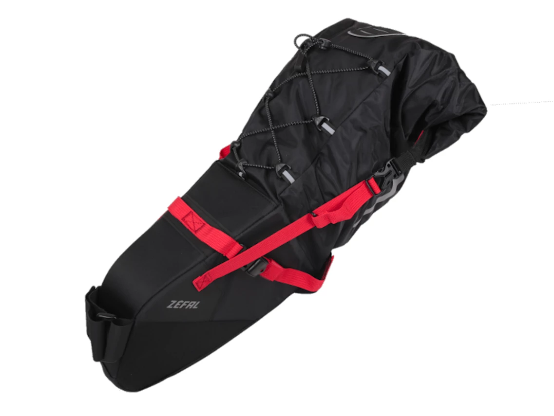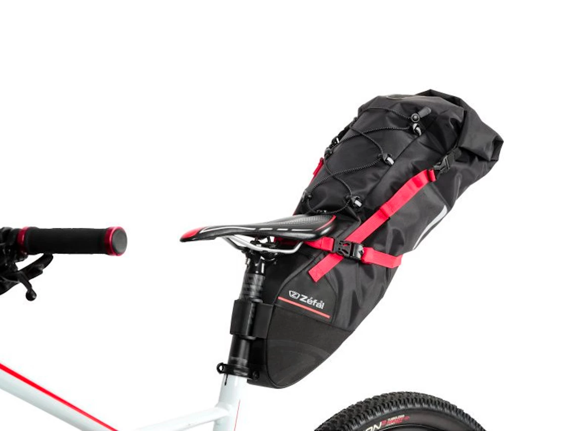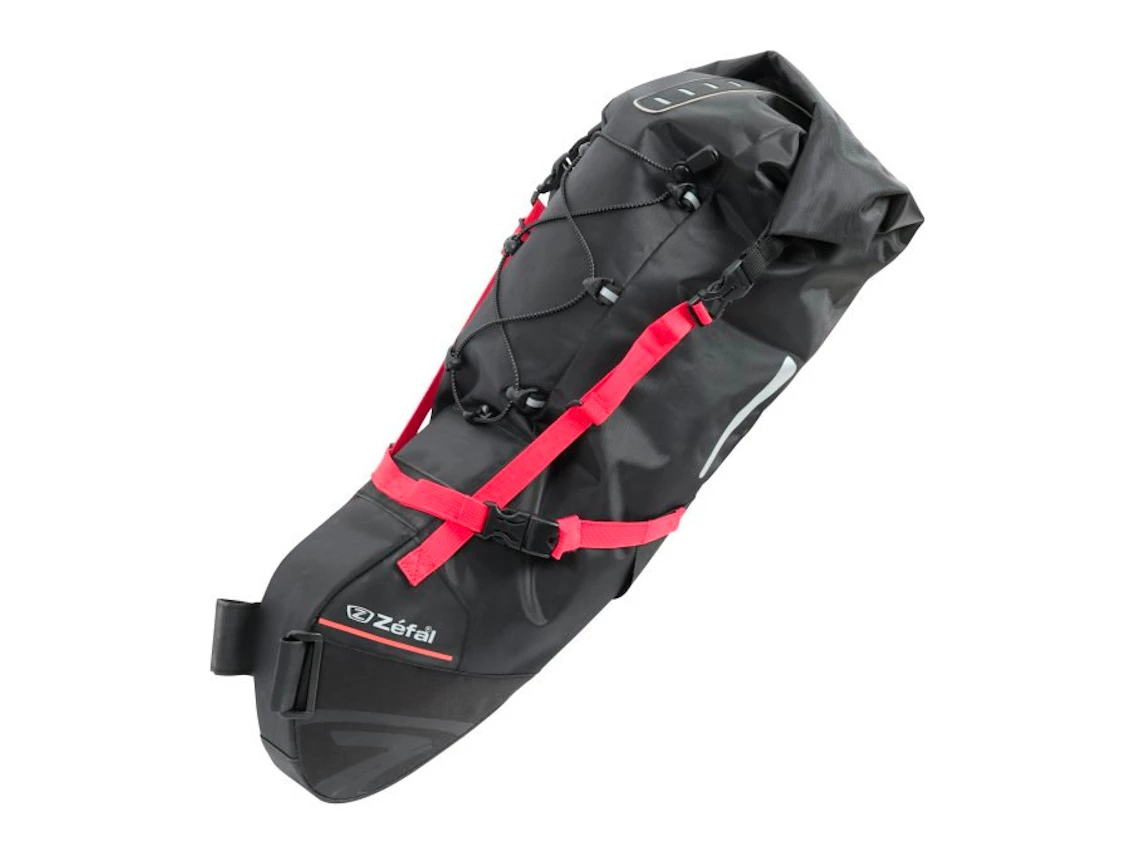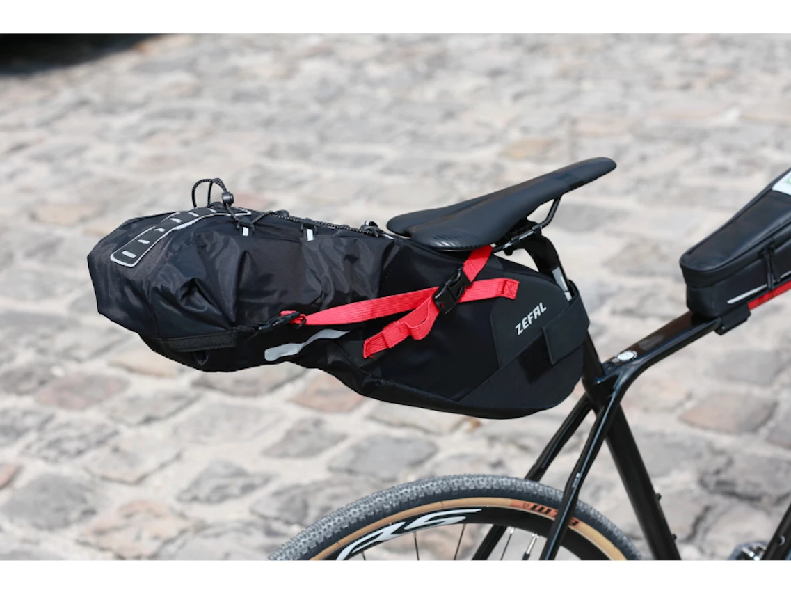 Equipped with several durable self-adhesive straps and anti-tear material on its base, this bag attaches to the saddle rails and seat post for optimal weight distribution on the bicycle. With a volume that can be adjusted from 8 to 17 litres, this bag is designed for cyclists travelling over long distances. Equipped with reflective strips and an attachment loop for lights, the Z Adventure R17 is ideal for carrying light, large-sized items such as clothing. The folding closure and waterproof fabric with heat-sealed interior can safely carry all the equipment needed for a tour.