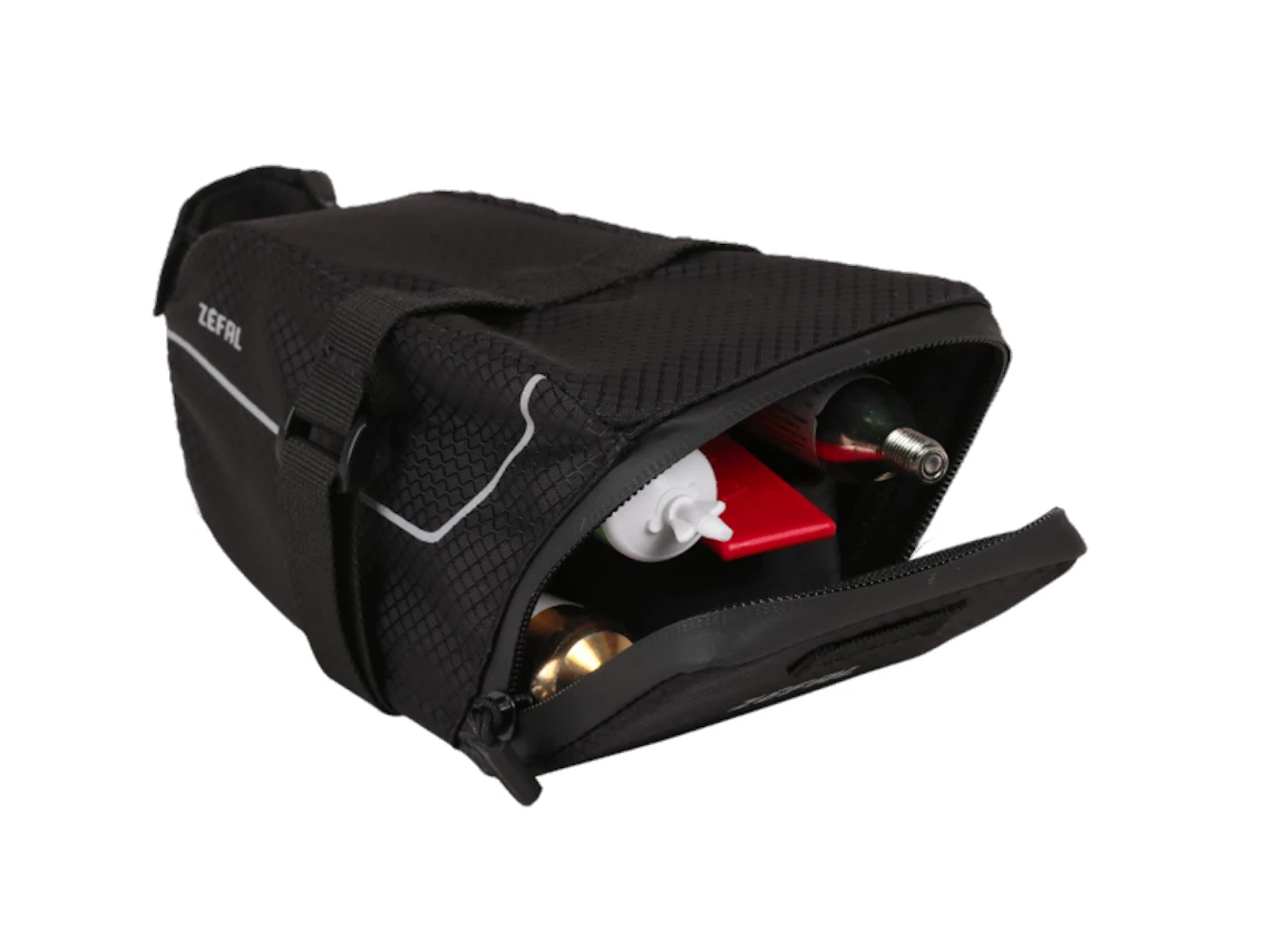 Large capacity – Provides enough room for 2 tubes + 1 repair kit + 1 multi tools + 1 co2 inflator like ez push + 1 mini-pump.